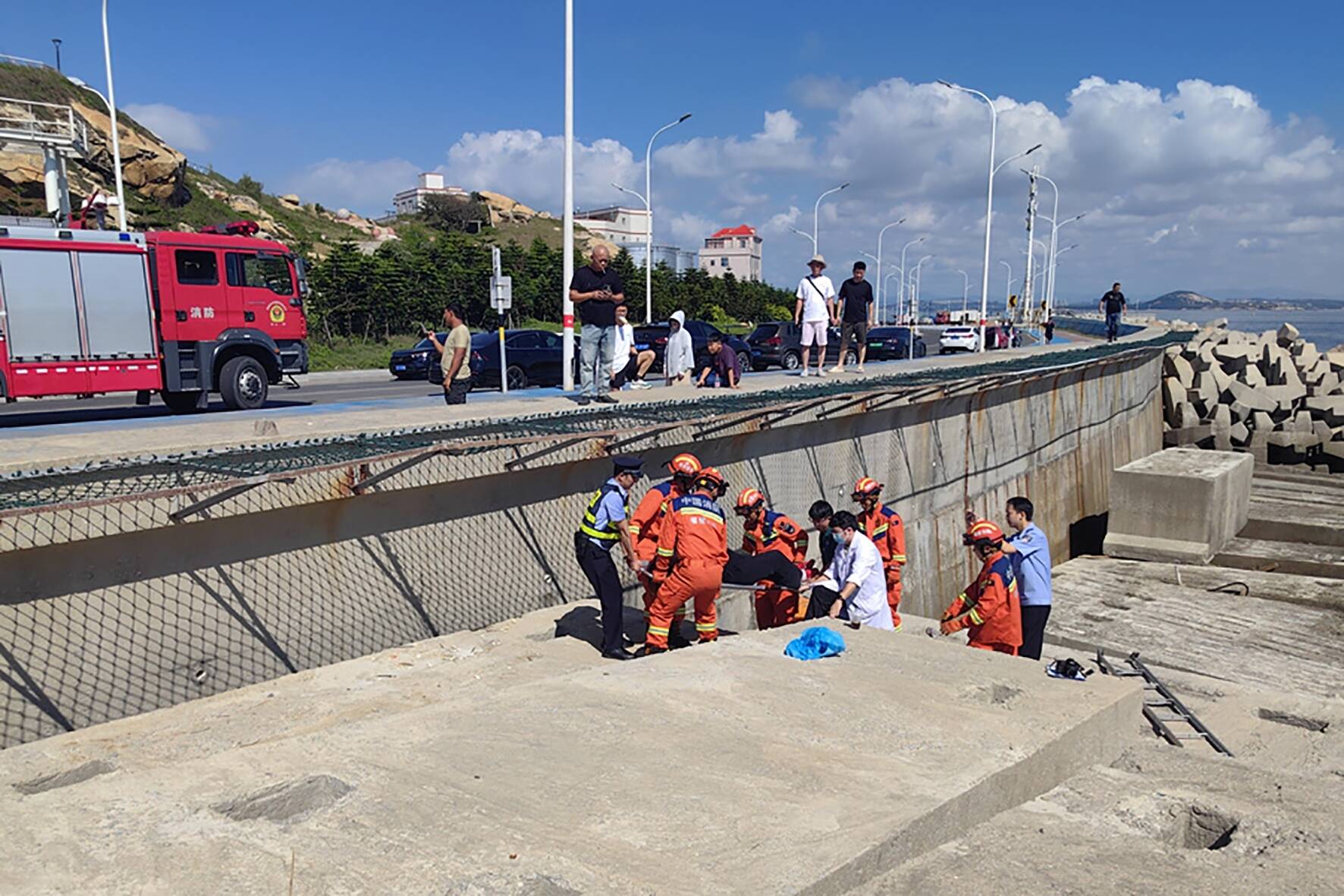 一女子不慎滑落防护堤 石狮消防紧急救援