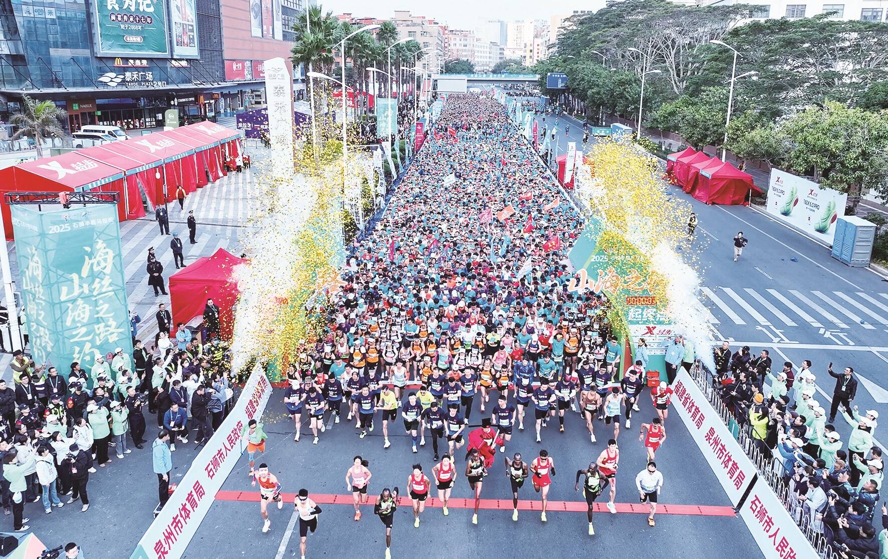 1月1日上午7时30分,激情与速度在石狮大地上再度碰撞。随着一声发令枪响划破清晨,“海丝之路·山海之约”2025特步·石狮半程马拉松赛鸣枪开跑,来自国内外的8000名跑友如浪潮般从起点涌出,用脚步丈量这座美丽的城市,用汗水书写坚持与梦想,更点燃了石狮人民的运动热情。
