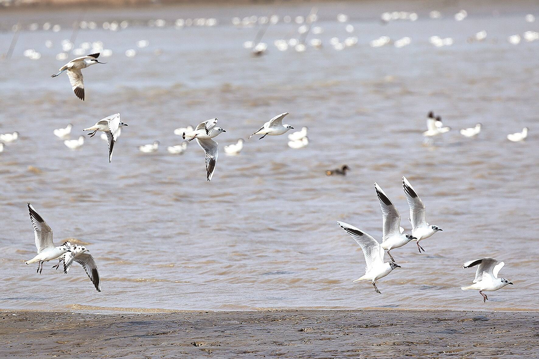 “除了泉州湾,在南安江崎、山腰盐场、百崎外滩、围头湾等地也有黑嘴鸥。”据泉州市观鸟学会会长吴轲朝介绍,黑嘴鸥对栖息地环境极为挑剔,多出入于开阔的海边盐碱地和沼泽地,是沿海滩涂自然环境的“试金石”。泉州湾水头外线湿地作为东亚-澳大利西亚候鸟迁徙路线上的重点节点,为黑嘴鸥等万千候鸟的越冬提供了重要栖息地。