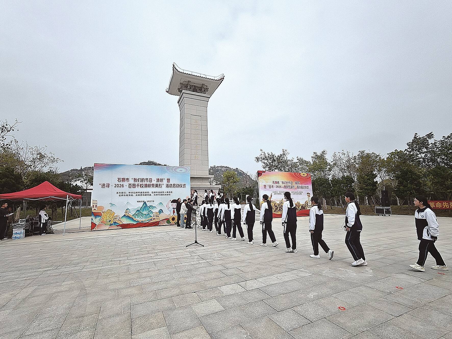鲜花献英烈,哀思祭忠魂。3月27日上午,2026年石狮市“我们的节日·清明”主题活动暨“追寻·2026·百园千校清明祭英烈”活动在石狮市烈士陵园举行。市委宣传部、市教育局、市退役军人局、团市委、市消防救援局和各镇(街道)退役军人服务站代表,鹏山工贸学校师生及烈士家属代表参加。市委常委李怀忠出席活动。