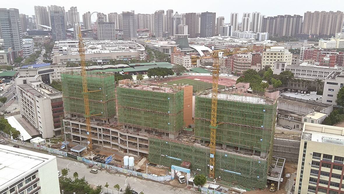 日前,记者航拍下石狮鹏山工贸学校改扩建项目最新进度,新建的三栋12层公寓型学生宿舍楼,进度快的一栋已施工至11层,另外两栋也完成了10层的顶板浇筑。项目计划在5月份完成主体结构封顶,并在今年秋季新学期前建成交付,助力改善学校的学生住宿条件。