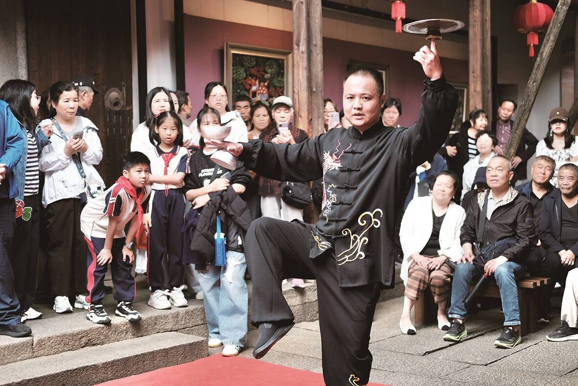 此次省博览苑展演中,邱培机将“转钹”“飞钹”“绕钹”等高难度招式演绎得行云流水。30年的匠心沉淀,让每一次抛接都精准利落,每一场旋转都惊心动魄,兼具力量感与艺术美感,尽显闽南传统技艺的深厚底蕴。据悉,作为石狮市非物质文化遗产项目“掷铙钹习俗”代表性传承人,邱培机自11岁起潜心学艺,日复一日刻苦打磨,终让这项古老技艺焕发新生。其代表作《璇钹九霄》曾荣获第五届福建省街头文化艺术展演“十佳节目”,并多次赴省外及海外交流展演,成为传播石狮文化的鲜活名片。