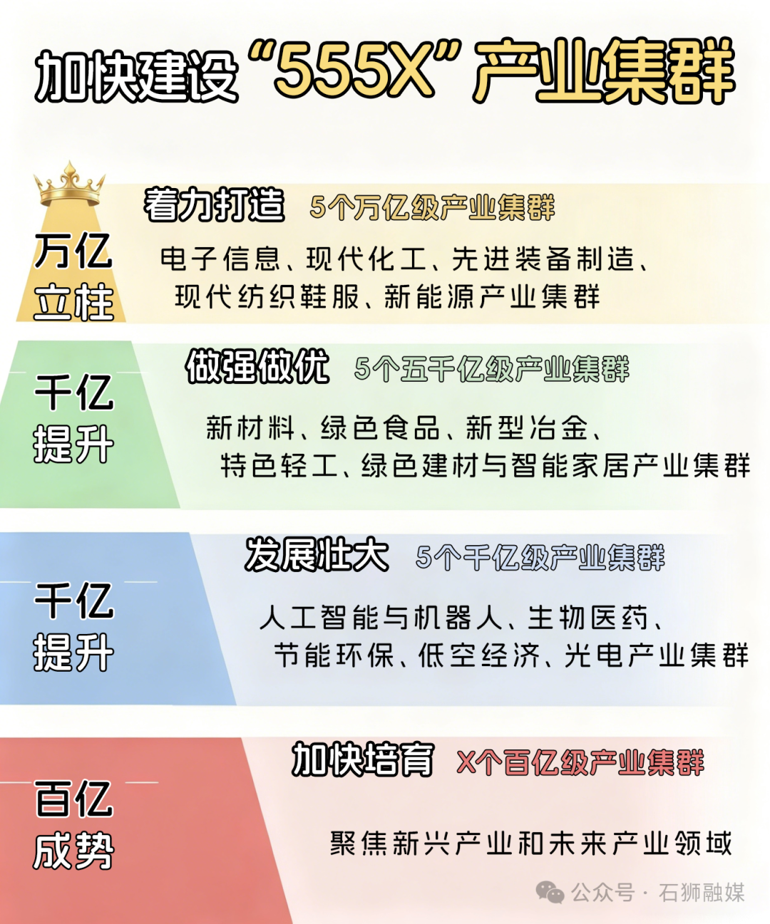 福建省“十五五”规划纲要提出,实施先进制造业集群发展专项行动,加快建设“555X”产业集群,推动形成万亿立柱、千亿提升、百亿成势的发展格局。