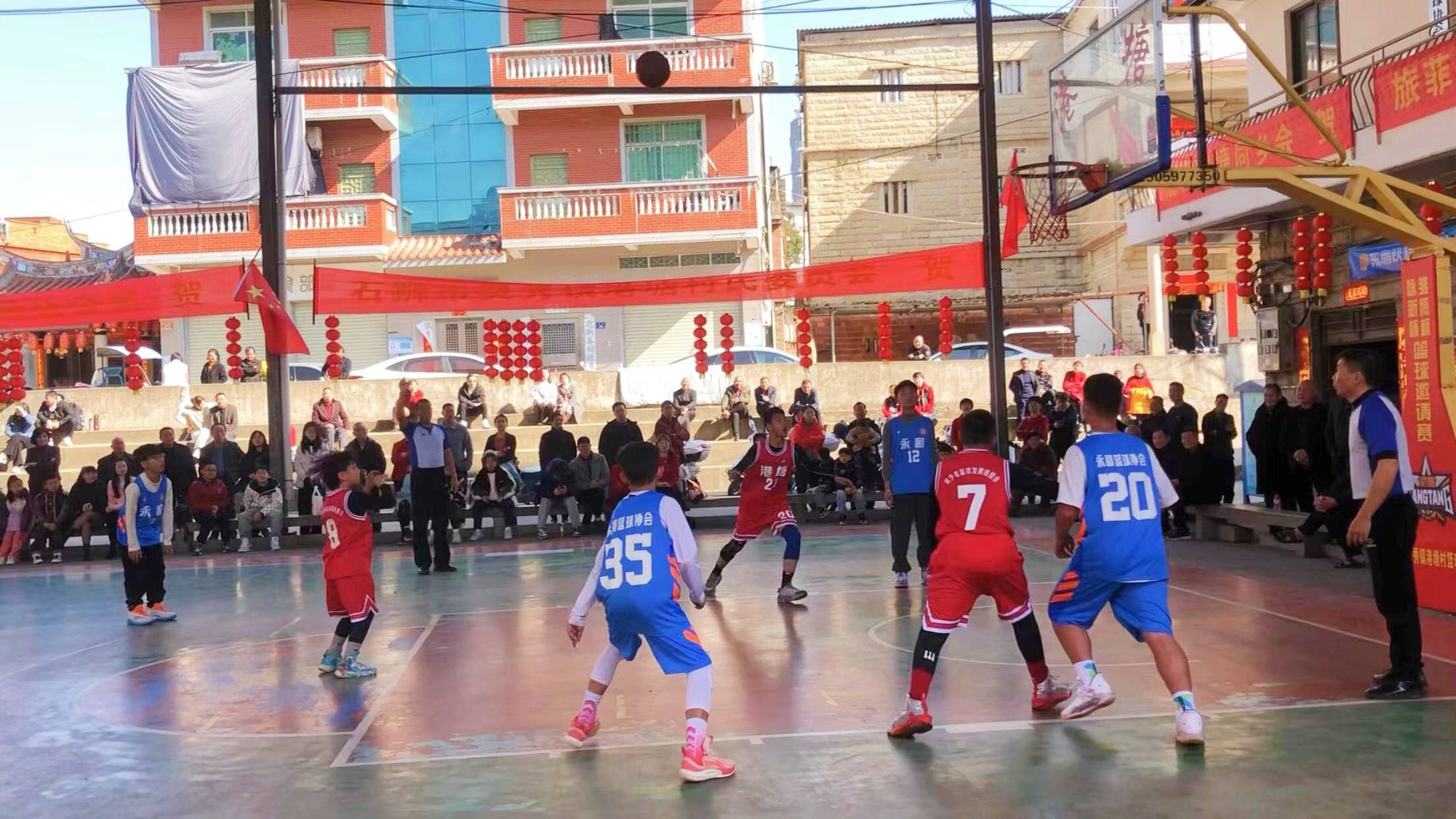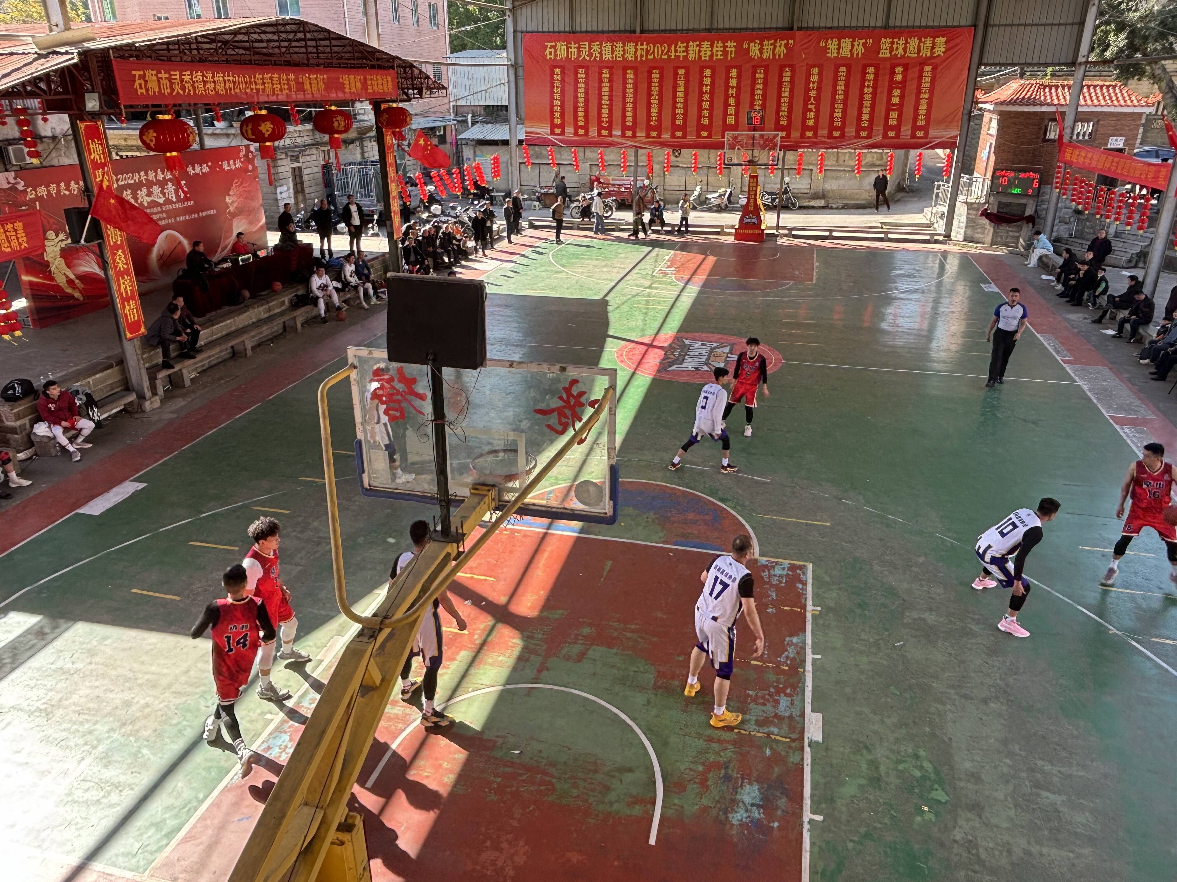 港塘村是石狮的“篮球热土”,也是石狮少有的成立村级篮球协会的村居。多年来,无论是篮球文化建设、篮球竞技综合水平,还是以篮球为载体推进全民健身深入开展,港塘村一直走在石狮乃至泉州村居前列,篮球已成为该村“一村一品”打造新时代文明实践名片、以文化赋能乡村振兴的重要载体。“春节期间,通过举办篮球邀请赛,既搭建一个交流互动的平台,在球技切磋中增进彼此友谊,也展示我们闽南人爱拼敢赢的良好精神风貌,丰富群众节日的文娱生活。”港塘村党委书记陈发展介绍,同步专门举行U12篮球赛,也是为了自小培育篮球新秀,让快乐篮球的基因在这方沃土根植。