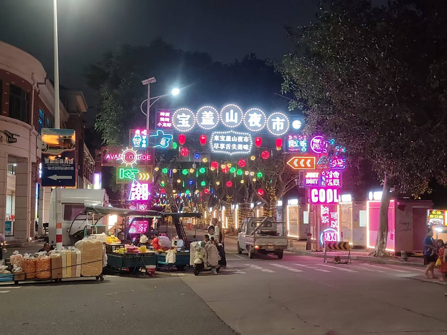 此次升级蜕变后,宝盖山夜市带来多重惊喜。10月30日起连续四晚,后备箱市集重磅回归,美式汉堡、章鱼小丸子、泰国冰淇淋、铁板豆腐等全网爆款美食齐聚,现炸臭豆腐等本地特色小吃香气扑鼻,琳琅满目的美味让夜宵党直呼过瘾。除了“舌尖上”的享受,现场还有歌手驻唱助阵,悠扬歌声为热闹氛围添彩,让游客在大快朵颐的同时,沉浸式感受乡村夜生活的惬意。