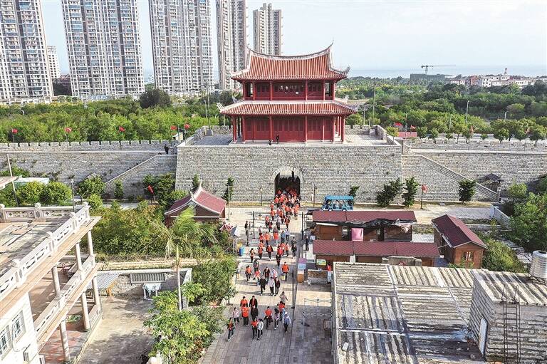 徒步活动从永宁古卫城城门口广场启程,各队伍途经城隍庙广场、在宁海、黄金海岸沿海步道,最终抵达观海广场,全程约5.5公里。沿途各队伍还依次完成“掷”地有声、快问快答、清正廉洁形象拼图打卡。