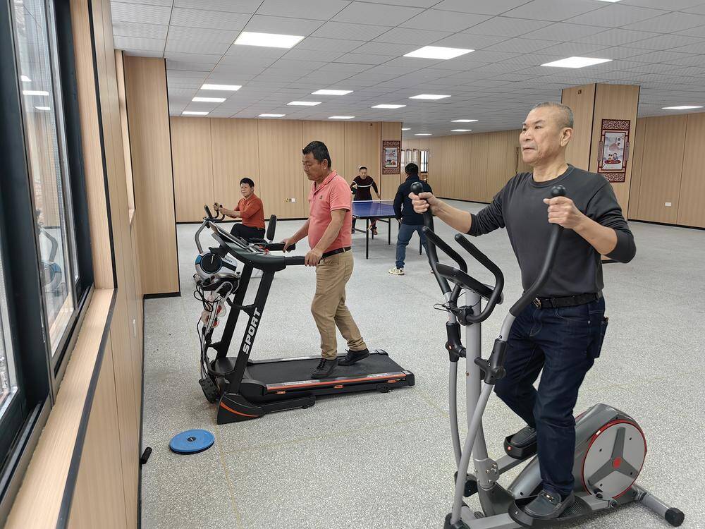 在东埔一村老年协会负责人带领下,记者走进位于该建筑5楼、已完成装修工作的多功能休闲区看到,宽敞明亮的楼层健身室、阅览室、棋牌室、会议室、多功能厅、卫生间、电梯等设施配置一应俱全,无障碍通道、防滑地面、充足照明、舒适座椅……每一处细节都凝聚着对老年群体的贴心关怀;透过窗户,一眼可见足球场、篮球场、气排球、地掷球场、门球场等健身场地,以及东埔海岸风光。当天,东埔一村村“两委”组织村老年协会代表打卡体验各项健身设施,收集反馈意见和建议,为项目投用前做好全面检测保障。“过去我们活动场所分散,条件有限,现在有了现代化老年活动中心,不仅能下棋、体育健身,还能上书法课、打太极拳、学习舞蹈等老年人特色课程,以后这里就是大家共同的‘第二家园’。”正在体验新设施的老年协会代表邱阿伯感慨道。