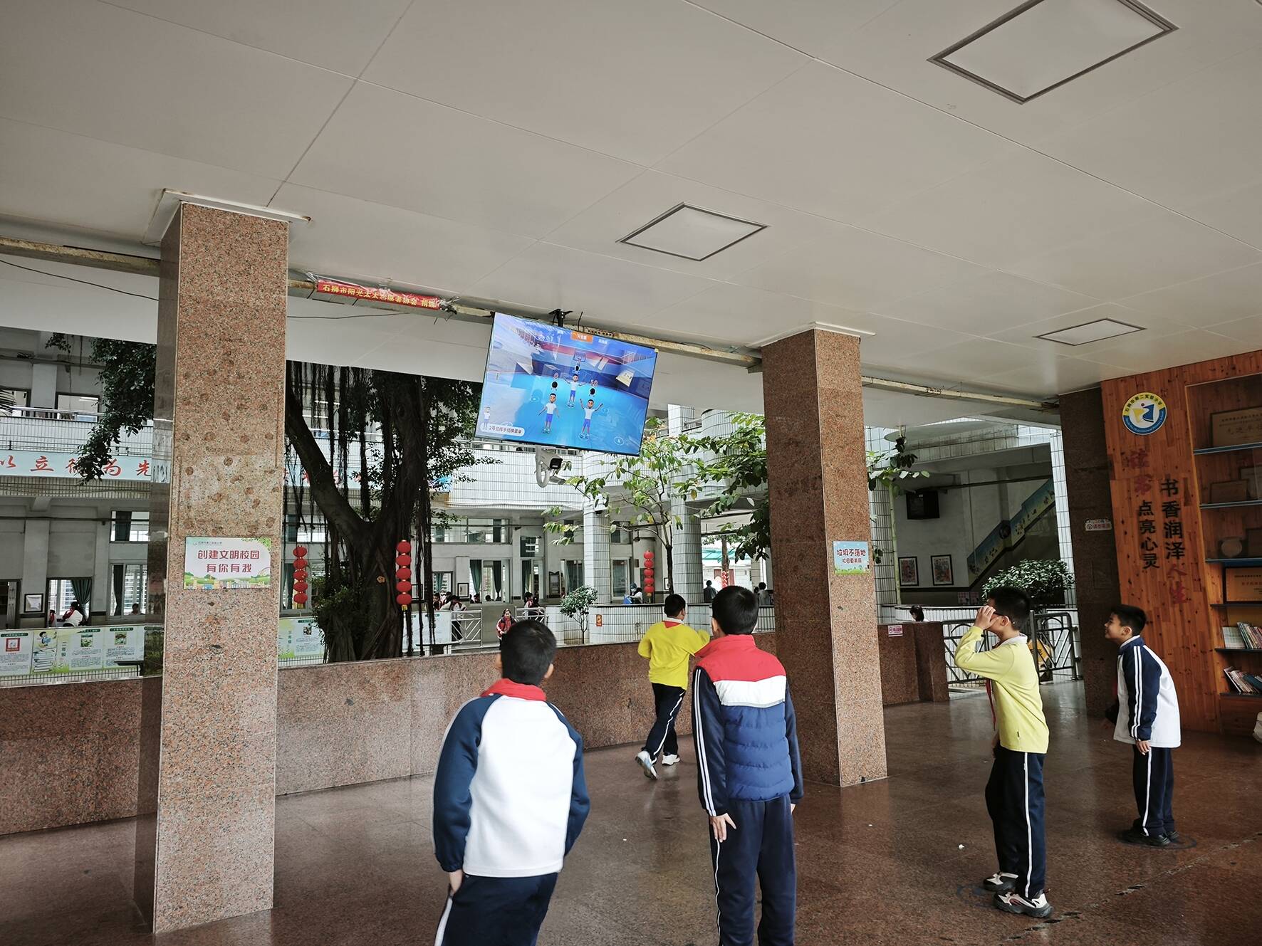 第二实验小学学生在课间与“AI体育老师”互动