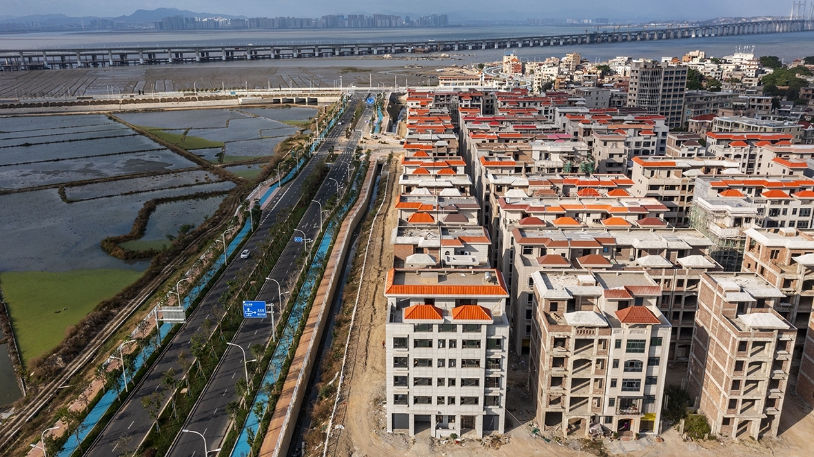 据了解,备受关注的锦江外线建设工程拆迁安置区项目分为2个区域,共安置174户拆迁户。该安置区由蚶江镇政府统一规划设计,由拆迁户自行委托建设施工。配套建设小区内道路、绿化、路灯及排污管等公共设施。该项目建设将有力改善蚶江镇辖区被拆迁户的居住环境,进一步提升辖区村容村貌和镇区形象。图为从高处航拍的锦江外线建设工程拆迁安置区