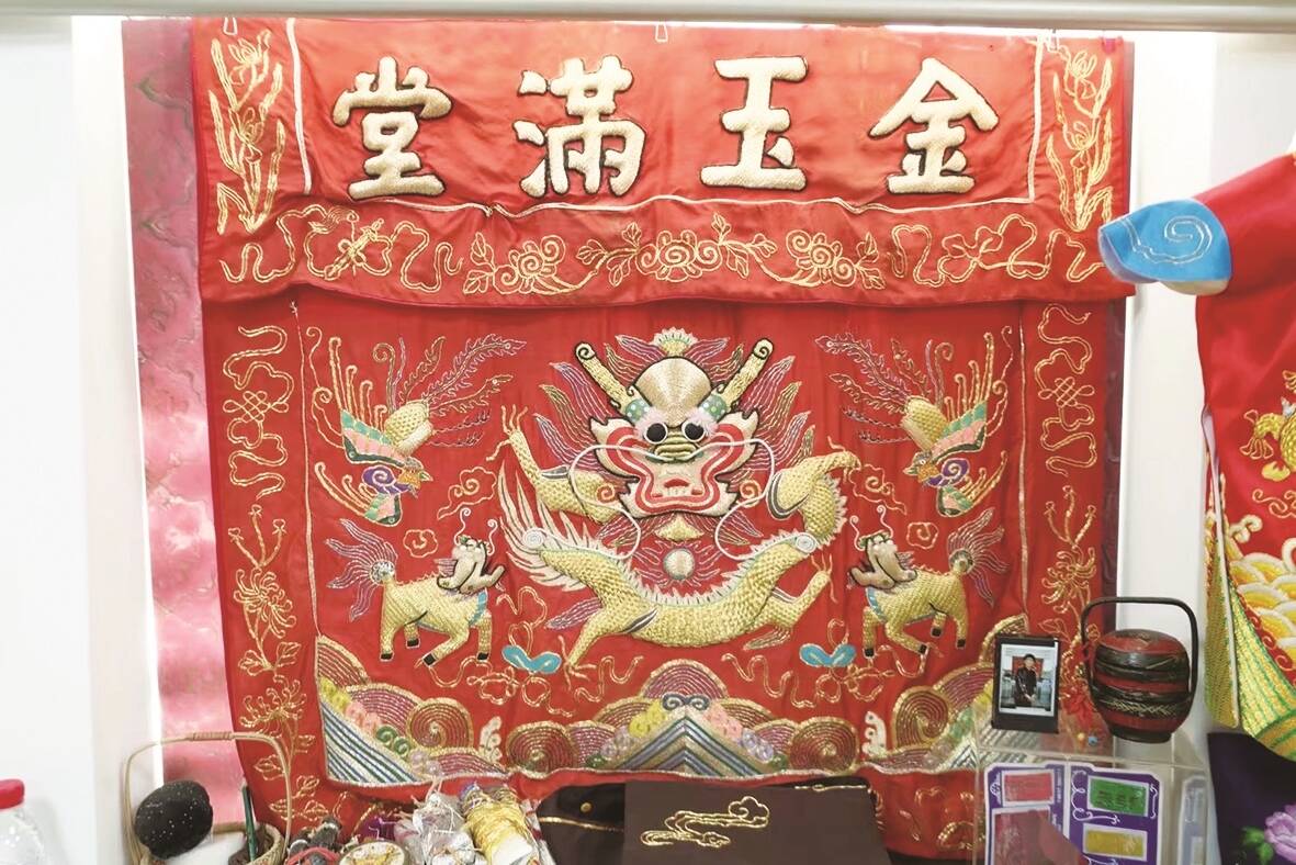 走进陈克忍位于泉州孝感巷的工作室,笔者一下子就被她的绣品吸引。那些神龙、麒麟、金鱼等吉祥图形栩栩如生、金碧辉煌。热情好客的陈克忍,见有客人来访,便上前介绍起来。