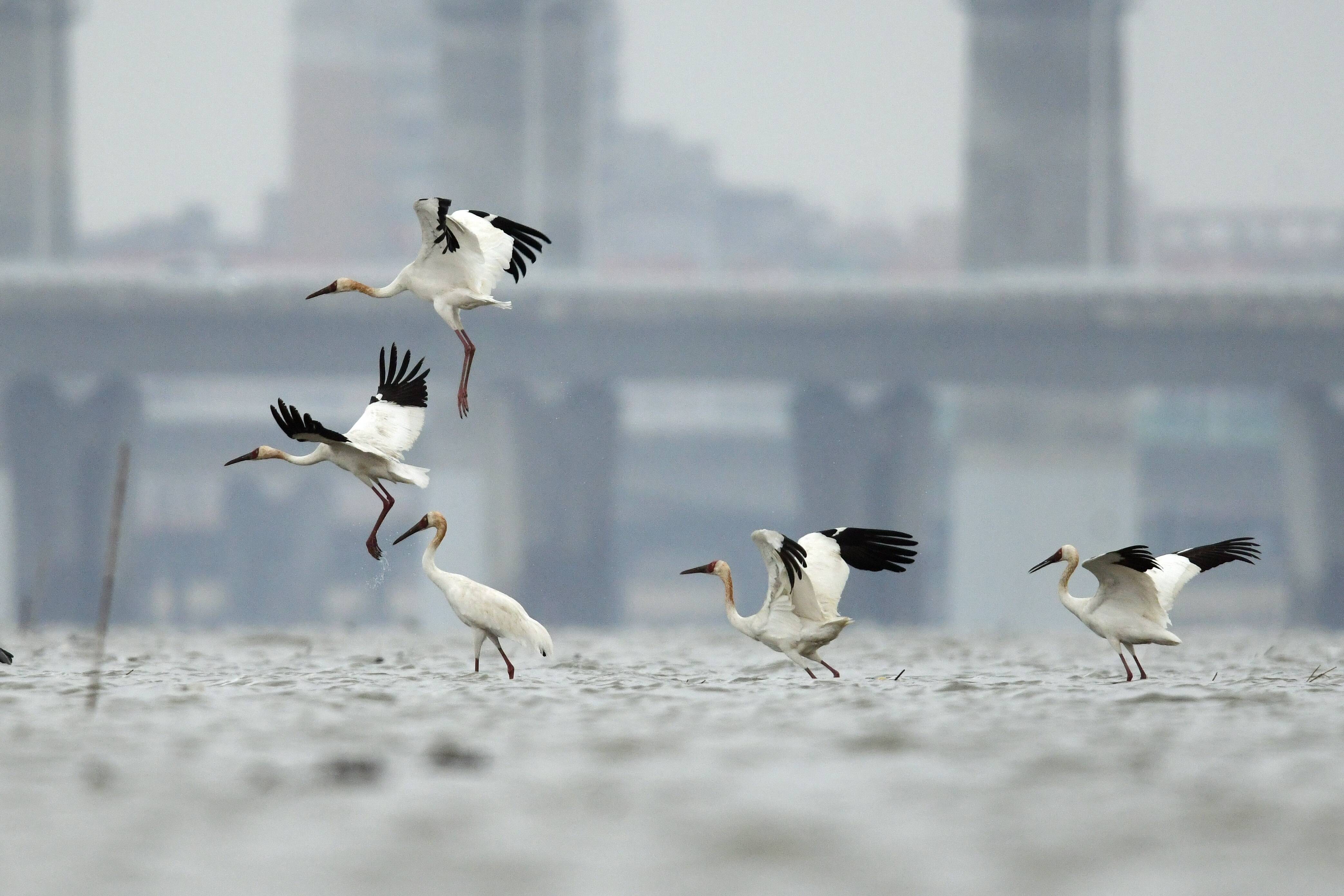 5只白鹤重返泉州湾石狮湿地