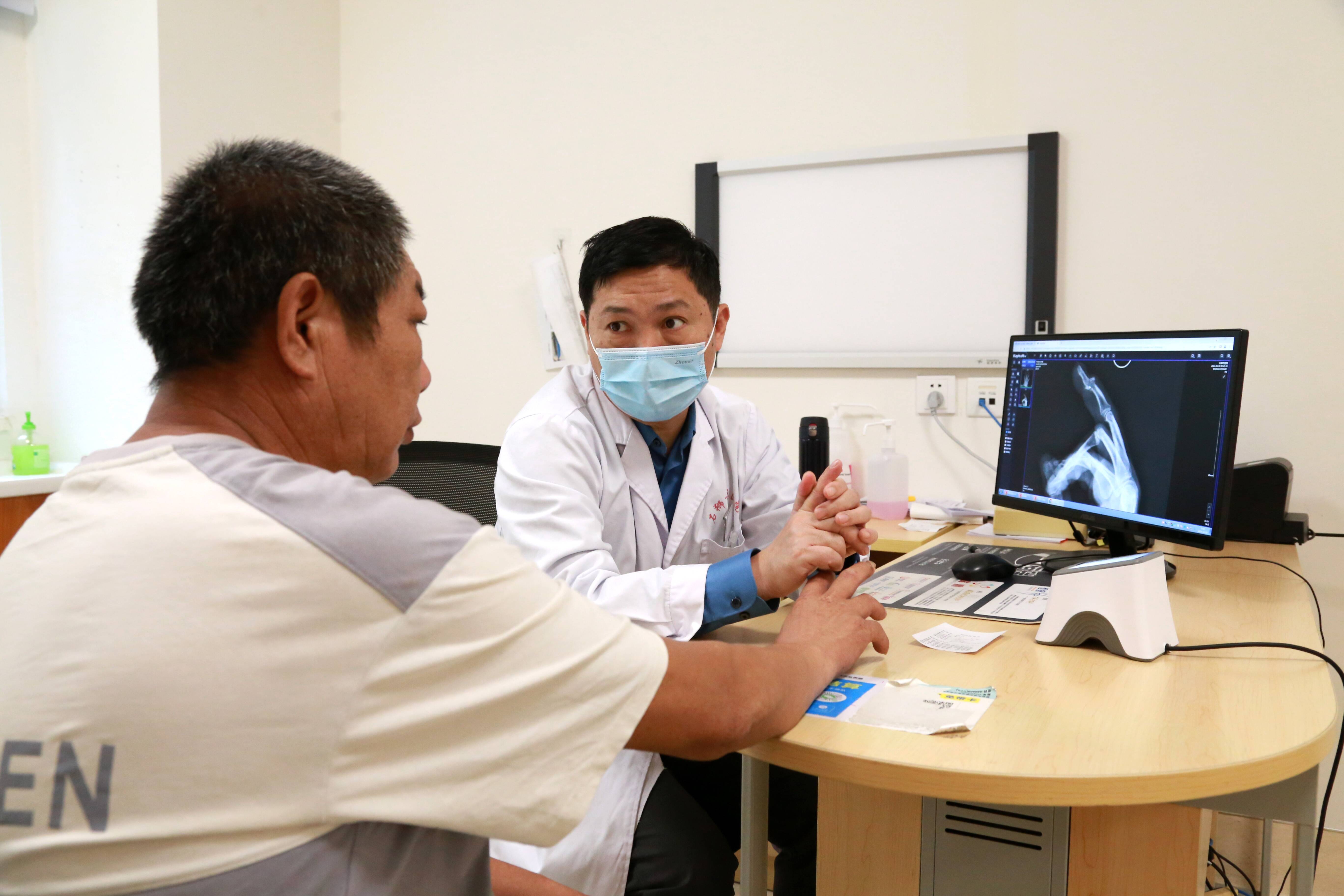 主任医师 杨照田 为手指骨折的 船工看诊