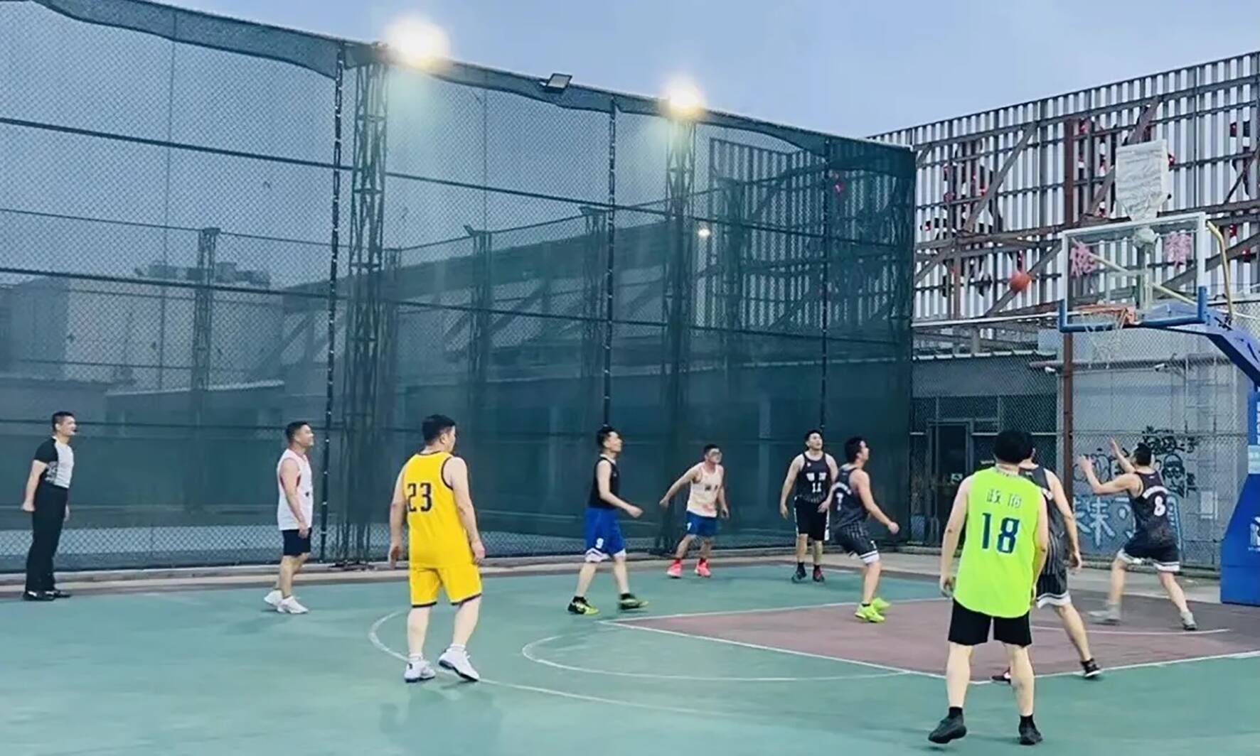 4月29日晚,湖滨街道机关职工男子篮球友谊赛在德辉商圈“党建+”邻里中心空中球场举行,街道“两委”成员与街道各办站中青年干部职工进行了一场别开生面的篮球比赛。