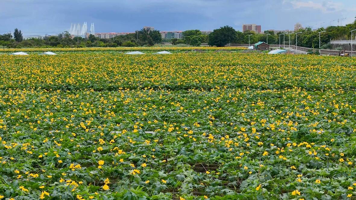 夏天的美,是散落于狮城各个角落的花海。就在湿地公园,百亩丝瓜花竞相绽放,翠绿欲滴的藤蔓上挂满了黄澄澄的花朵,像是夏日的使者传递着骄阳的热情。