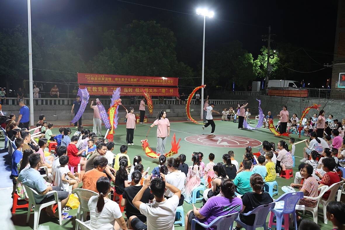 8月4日晚,宝盖镇郑厝村灯光篮球场成了“快乐大本营”。由村新时代文明实践站、关工委、闽南理工学院教育学院“院长妈妈有约”社会实践支教队等共同举办的“村晚联欢聚温情 师生亲子乐融融”2024年郑厝村暑期文艺晚会精彩上演,吸引众多村民到场观看。
