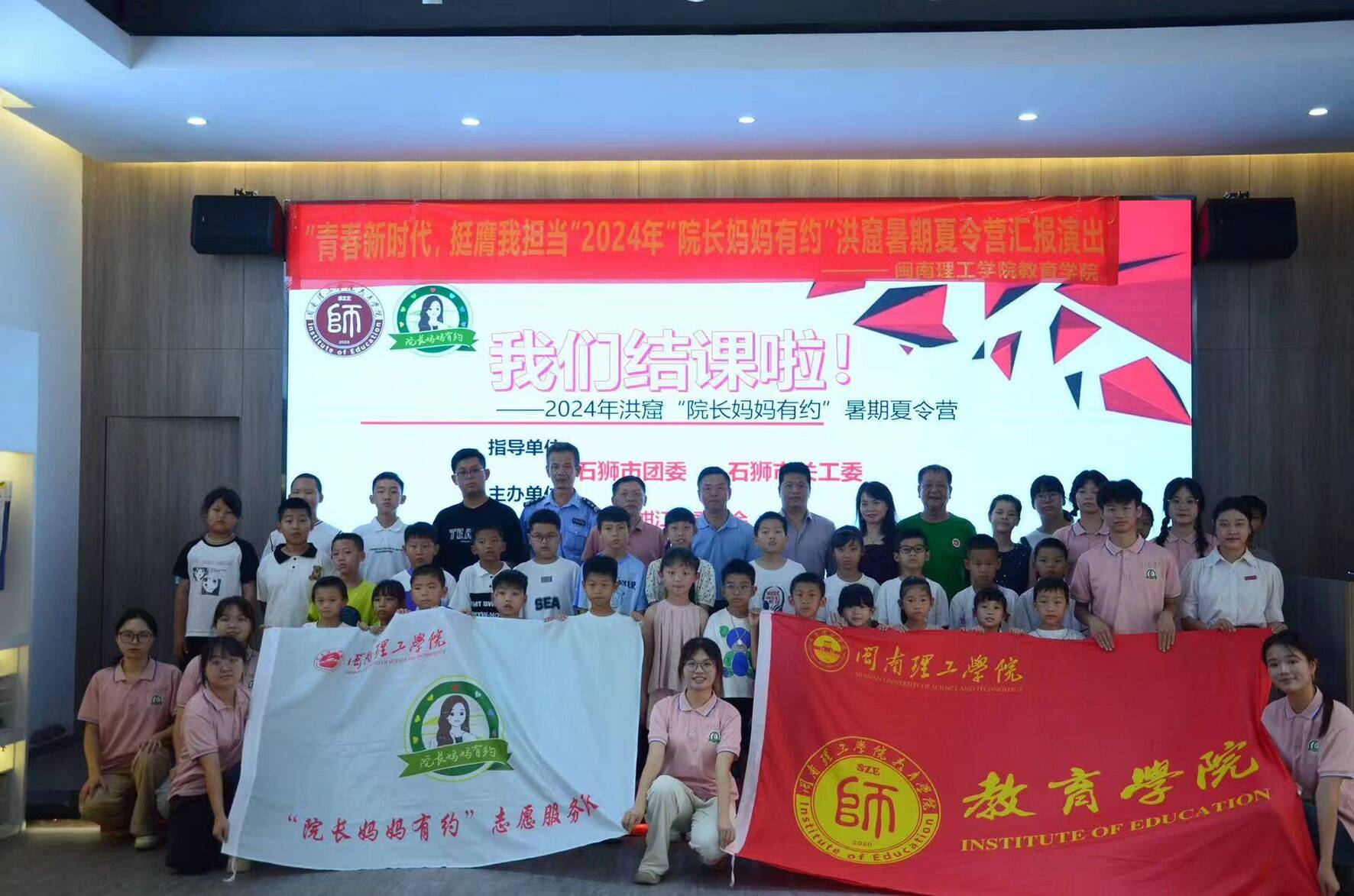 8月7日,由石狮团市委、市关工委指导,共青团蚶江镇委员会、蚶江镇关工委、蚶江派出所洪窟警务室青少年社会教育活动中心、闽南理工学院教育学院社会实践支教队联合举办的“青春新时代,挺膺我担当”2024年“院长妈妈有约”洪窟社教中心暑期夏令营结课汇报演出在福建省德奥针织股份有限公司展厅举行。