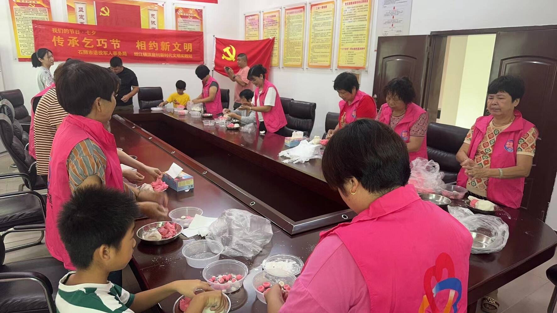 共搓七夕糖粿,弘扬传统文化。8月8日,洪窟村党委、村委会联合石狮农商银行锦亭支行在洪窟村新时代文明实践站举办一场“传承七巧节 相约新文明”主题活动,传承中华优秀传统文化,弘扬七夕节日习俗。