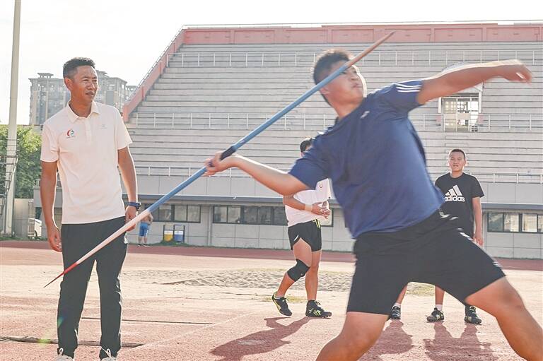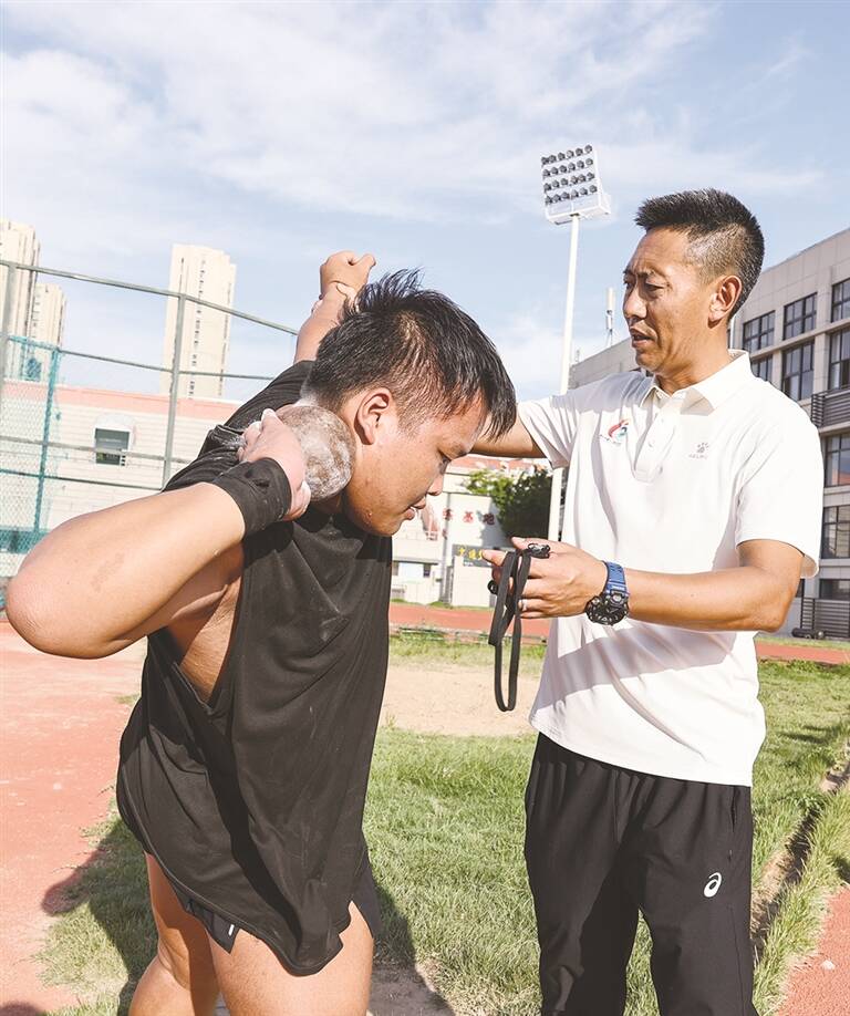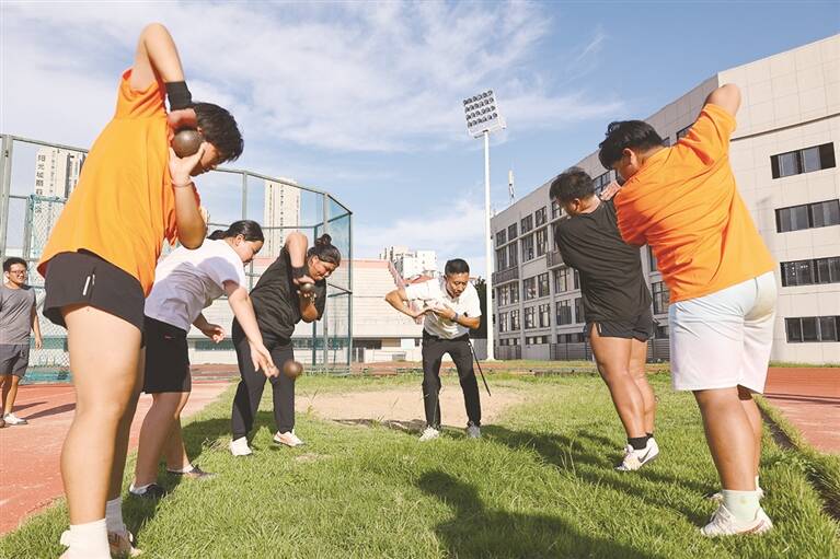 “上午是孩子们的课业学习时间,因此在8时前对孩子们进行训练,让他们时刻保有‘肌肉记忆’。下午则都是训练的‘重头戏’。”临近下午5时,王伟一边指导运动员铅球技巧一边介绍,“不能全盘照搬国际选手的动作形式,要发挥孩子们在青少年阶段的灵敏性和速度优势,这更需要细抠技术动作间的节奏,挖掘他们的潜力。”运用该理念,他进一步指导投掷标枪的小运动员们。