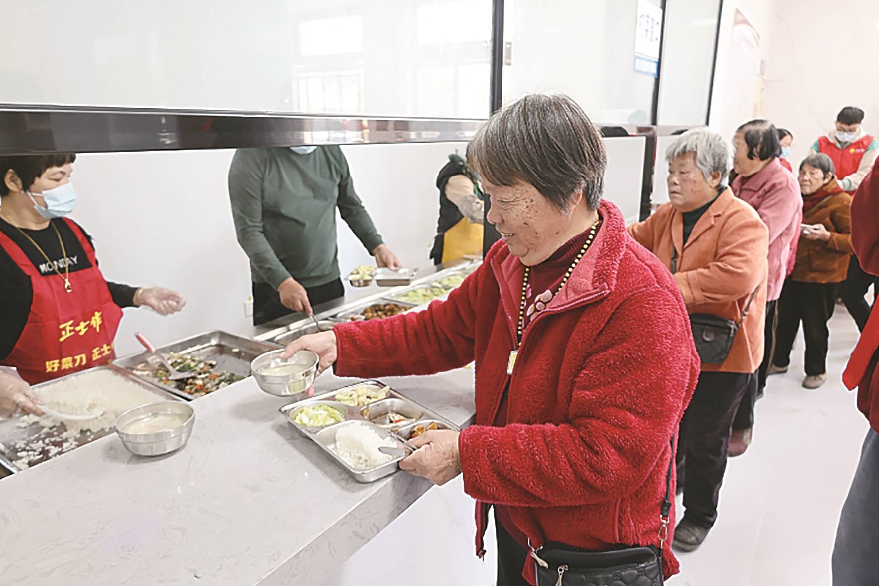 考虑到腿脚不便或无法出门的老人,该食堂还建立“线上点餐+线下服务”“食堂就餐+配送入户”的助餐服务体系,提供送饭上桌和送餐上门服务,高标准、高质量打造分区明确、布局合理的现代化老年食堂。