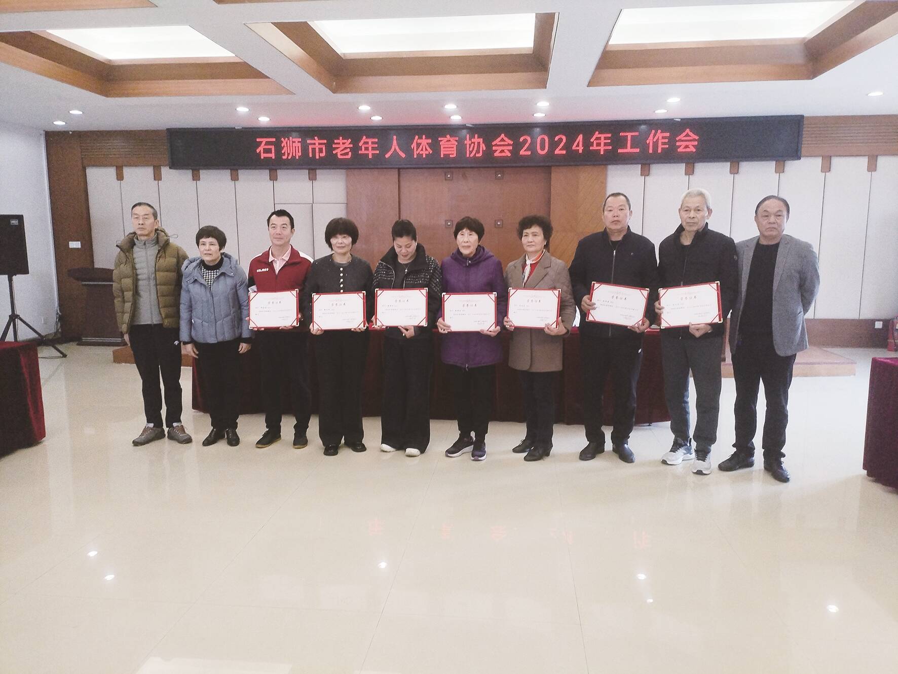 2月19日,石狮市老体协2024年工作总结会议在市老干部活动中心举行。会上,对一批获泉州级荣誉的老年体育团体及个人进行了授牌表扬。