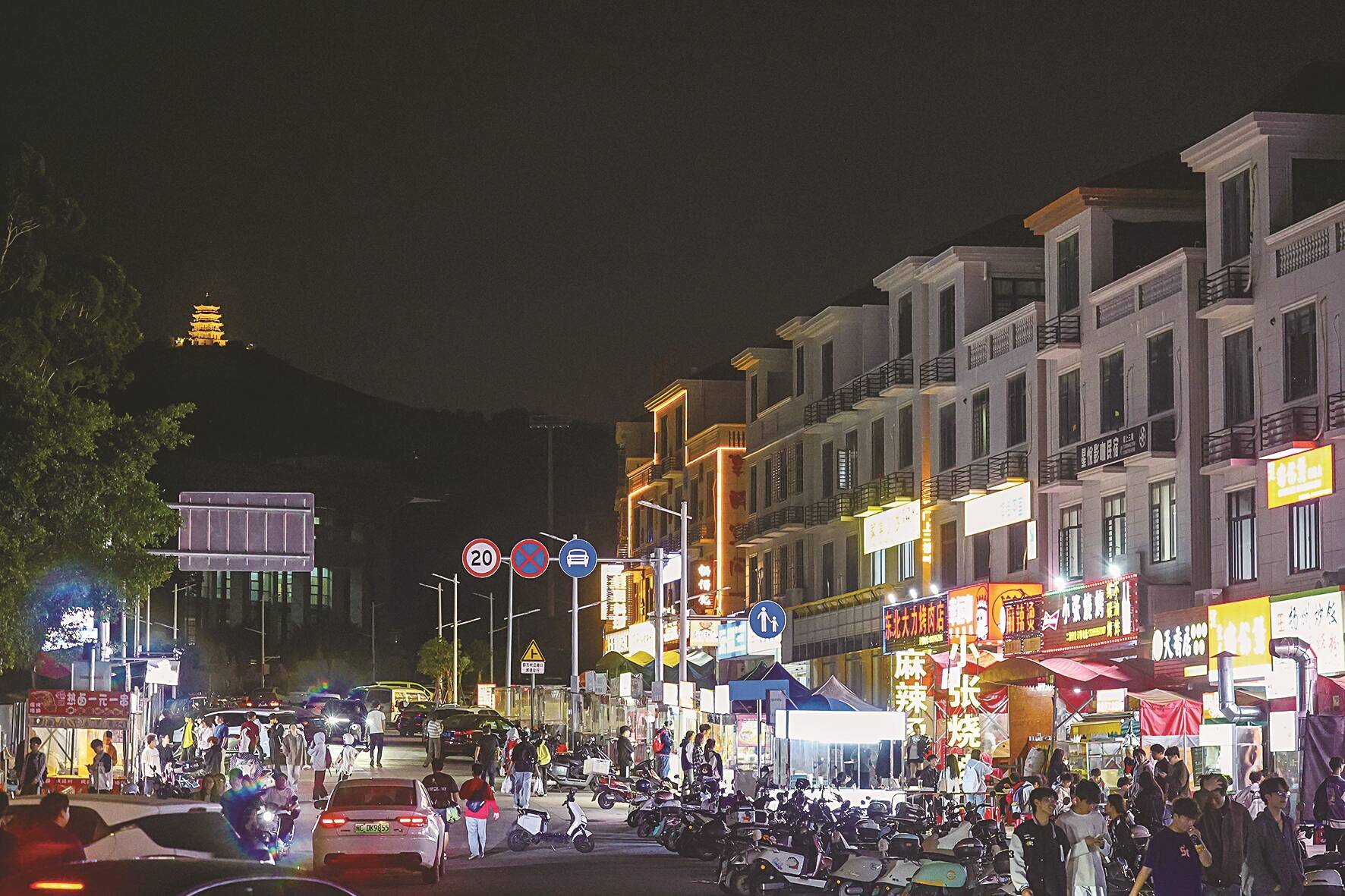 这条进出村落的通道一打通,一个新的夜市便在此形成,成为村落“烟火气”十足的好去处,吸引了众多大学生前来消费。这一夜市的形成,在带动村集体经济收入和村民就业创业的同时,也带来了新问题:占道经营带来的交通堵塞现象,垃圾随地丢弃造成“脏乱差”的环境卫生,不规范经营引发的噪音等扰民问题。