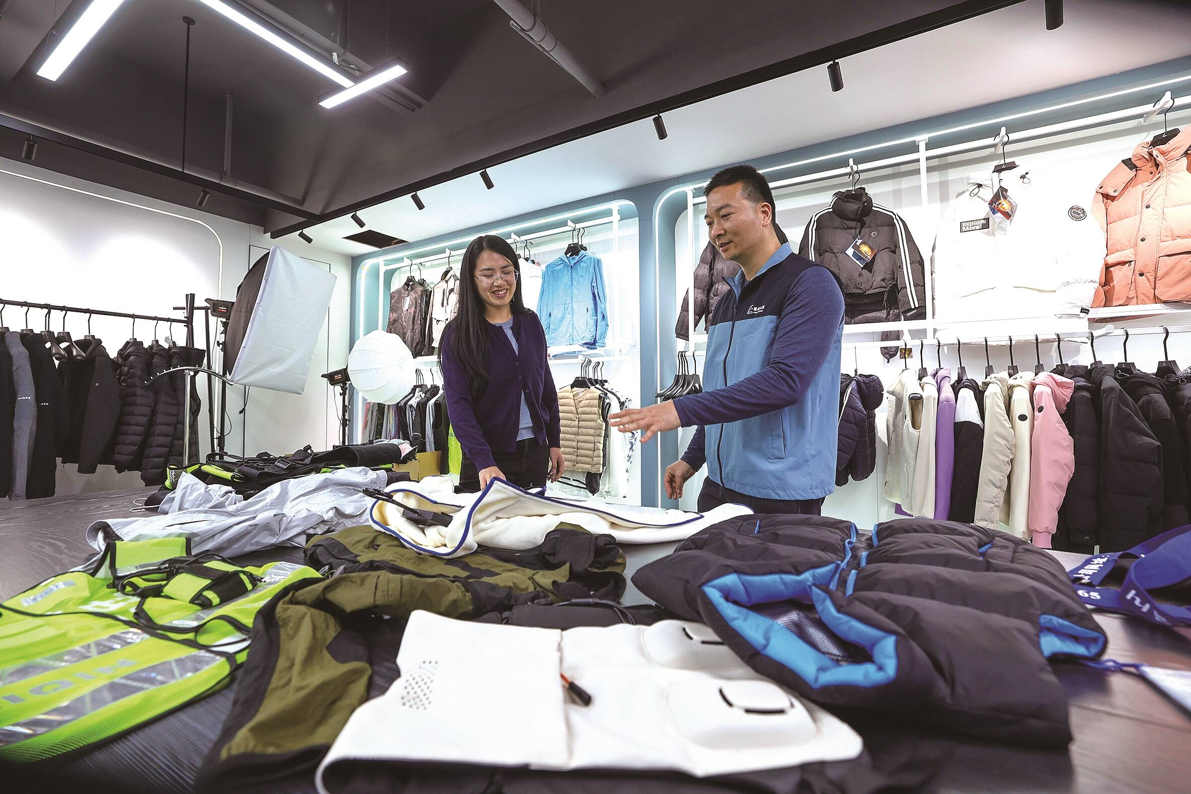 “这是我们刚赴德国慕尼黑ISPO Munich 2025展会带回来的部分样品订单,正在加紧排产。”庄小清指着一批功能性户外服装介绍。今年12月初的首次欧洲之行,该企业以智能温控技术、环保再生面料及符合人体工学的设计,吸引众多国际品牌商关注,收获一批意向订单。