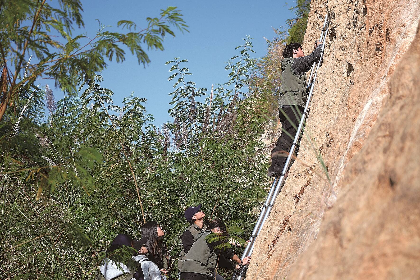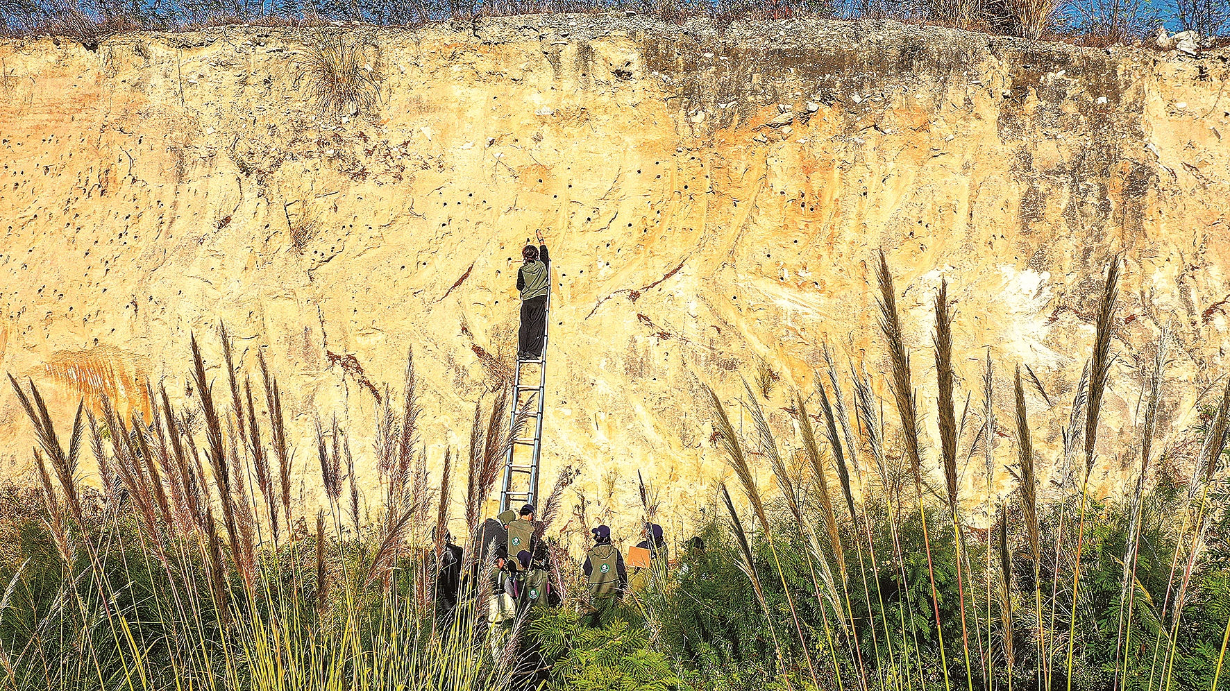 统计巢数、测量洞深、探查洞况……12月10日,在栗喉蜂虎南下越冬之后,石狮峡谷旅游路栗喉蜂虎营巢地又热闹起来:泉州市观鸟学会工作人员、志愿者携带折叠梯、测距仪、探测仪等设备,进入该区域开展监测统计工作。这也标志着,石狮市新一轮栗喉蜂虎保护项目启动,“最美小鸟”在石狮的“家”又将焕新。