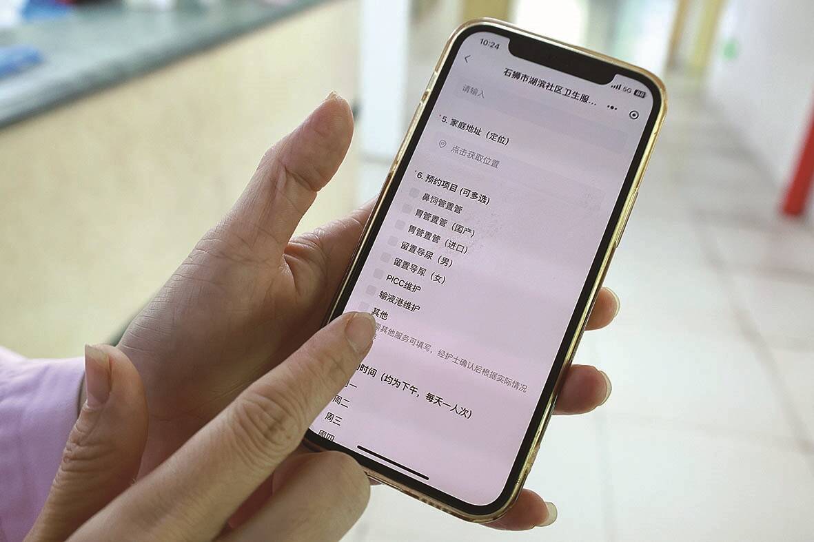 经朋友提醒,杨大叔通过湖滨社区卫生服务中心的线上平台,尝试预约上门护理服务。下单后不到一小时,护士长邱清昧便提着护理箱,冒雨赶到他家。“路上积水太深,怕耽误时间,我提前半小时就出发了,绕了好几个路口。”顾不上擦干头发,邱清昧迅速为老人家完成评估、消毒,并进行胃管更换。“以前上医院,来回折腾起码大半天。现在有了这个服务,再恶劣的天气都不用怕了!”杨大叔的言语中满是惊喜与感激。