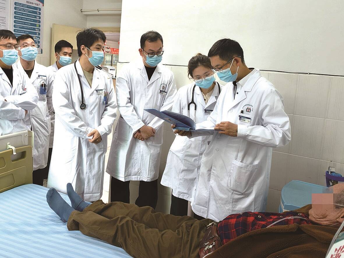 “阿伯,最近血压控制得不错,降压药剂量可以微调。”每周五上午,湖滨社区卫生服务中心全科病房总会响起这样亲切的问诊声。由中心主任郭焕钢、副主任施文强、挂职副主任杨叶楠带队的联合查房团队,会深入病房为住院患者开展多学科查房。