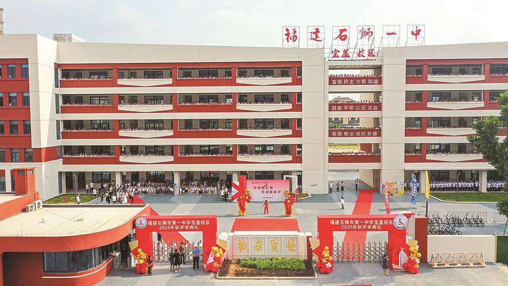 9月1日,石狮市第一中学宝盖校区正式启用,迎来首批初中与小学新生。该校区按九年一贯制设置,规划办学规模为80个班,目前,一期项目已建成投用,包括2幢教学楼、运动场等;二期项目将力争明年8月完工,包括1幢教学楼、1幢教学行政楼、1幢实验楼、1幢综合楼及大礼堂、室内体育馆。