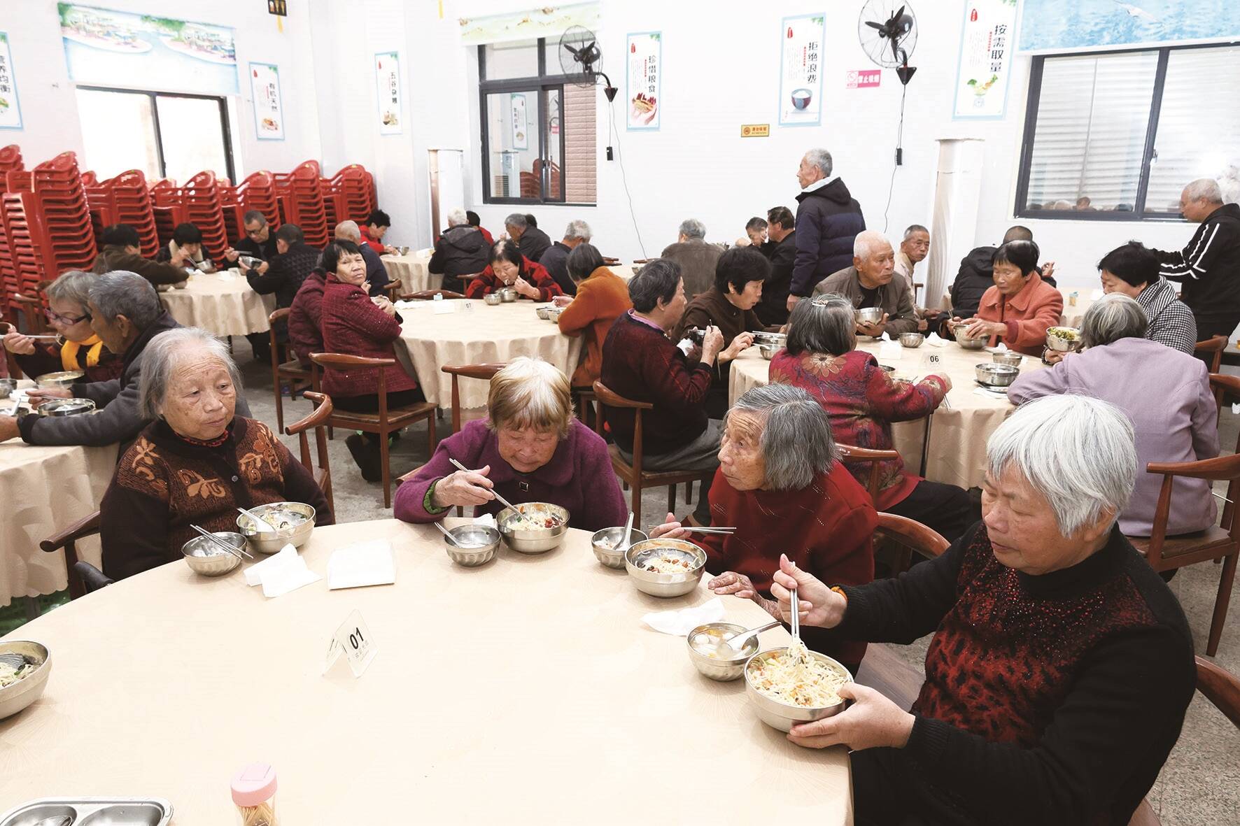 12月30日中午,鸿山镇伍堡村长者食堂迎来第365个开餐日,90多位老人围坐一堂,品尝热气腾腾的午餐,欢声笑语不断。