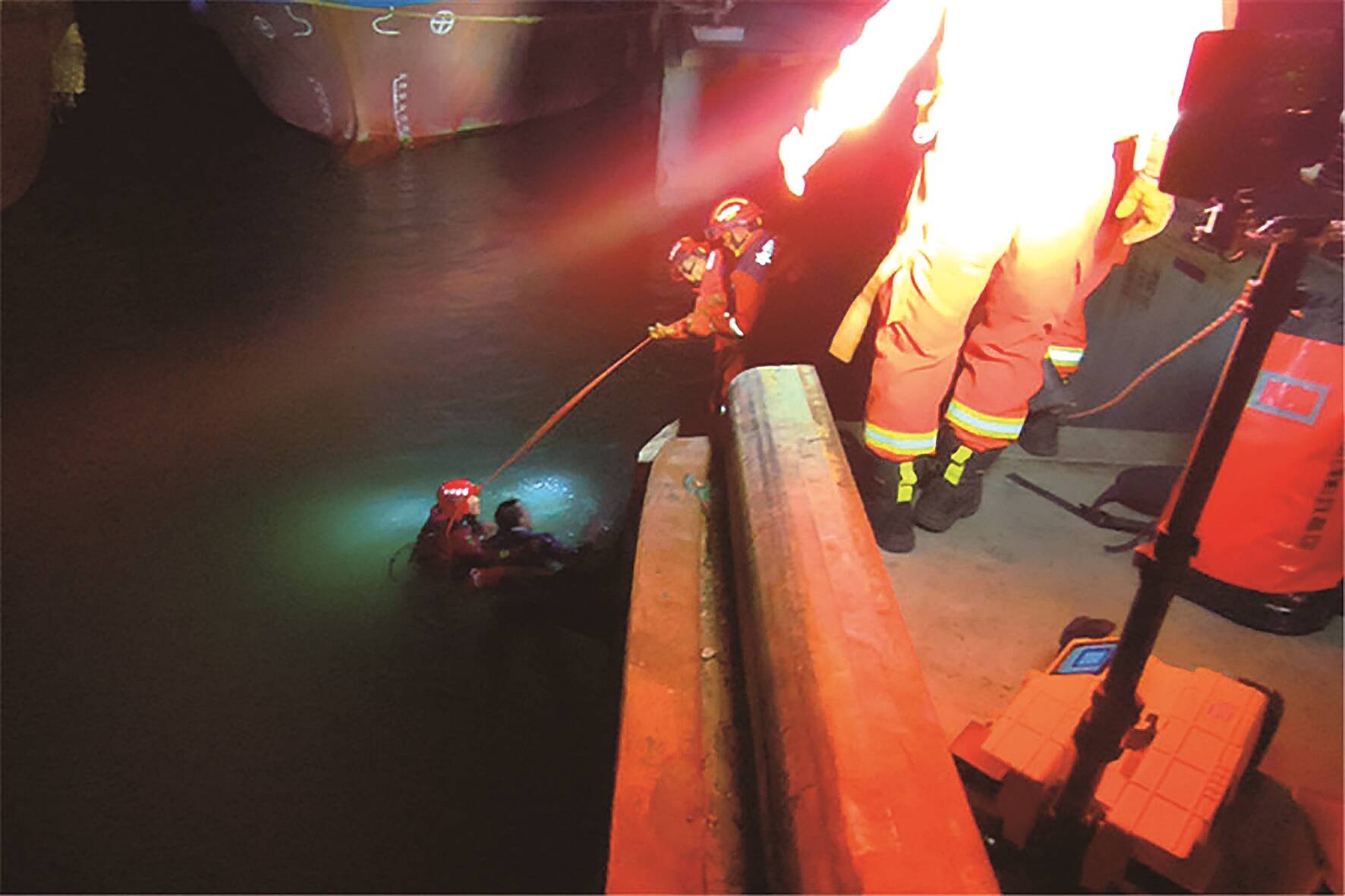 1月7日凌晨1时许,石狮市祥芝镇中心渔港内有人不慎掉入海中,情况危急。接到警情后,鸿山消防救援站立即派消防救援人员赶赴现场救援。