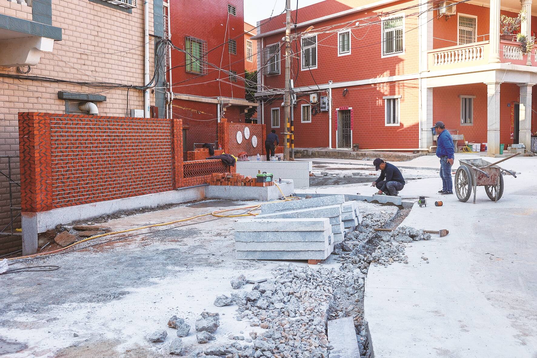 日前,记者在宝盖镇杆头村采访时看到,该村多个路段正在同步施工。除抓紧推进村落旧“主干道”改造提升外,杆头村还借此机会做好“美颜”文章,在沿路的多处边角地建设微景观。杆头村有关负责人介绍:“我们动员村民让出停车位,并将一些闲置地块利用起来,与正在改造的村道进行统一设计,把这些边角地块打造成村落的微景观。”据悉,这些景观建设有望于近期完工。