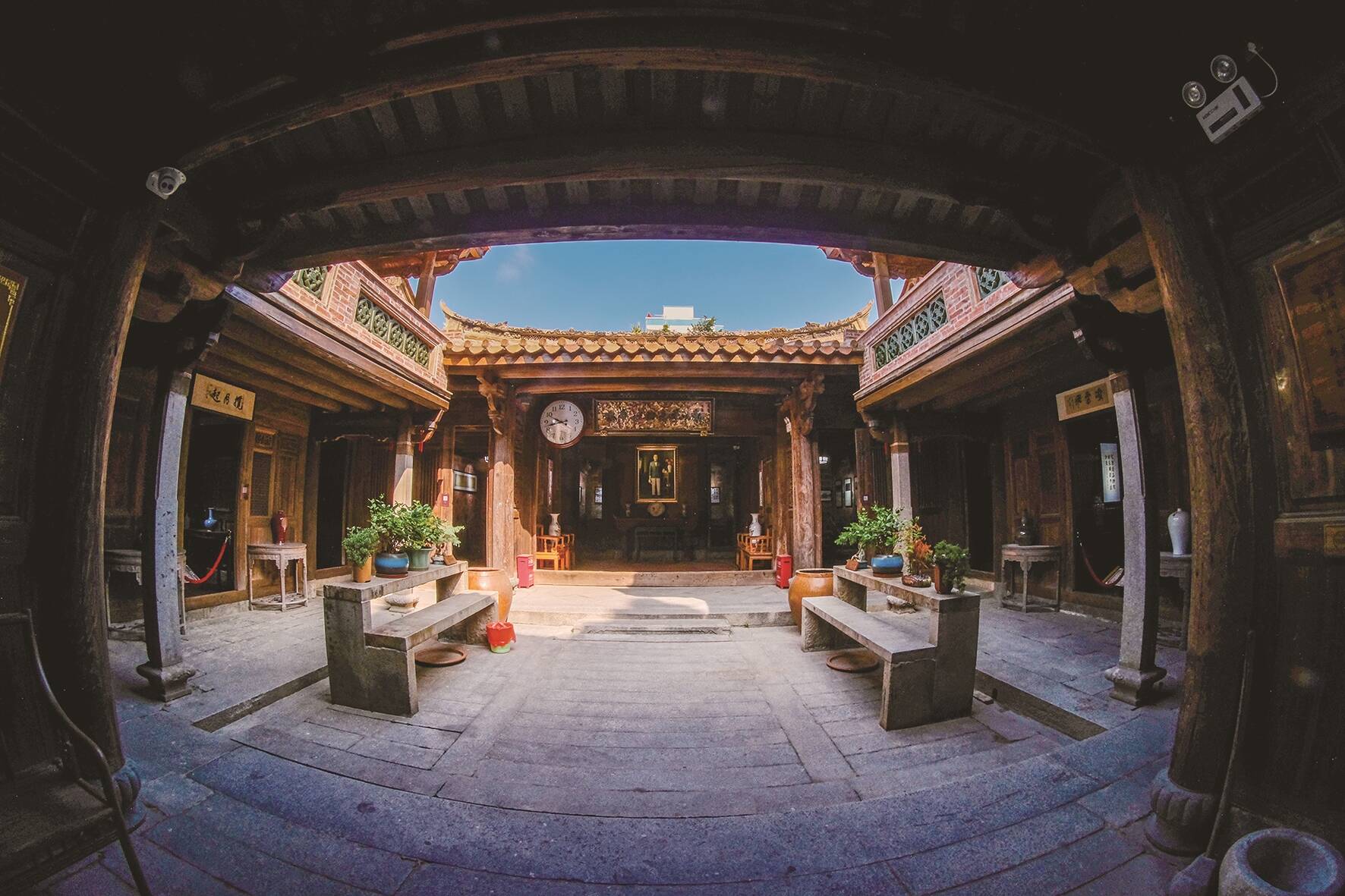 “省保”华山蔡氏民居是一座富有闽南特色的阔大建筑,红砖灰瓦相得益彰,翘脊飞檐引人入胜。