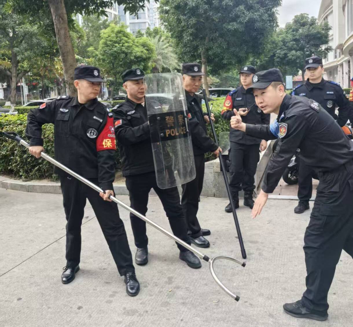 近日,城市物业公司组织全体安保队员开展应急防暴培训。
