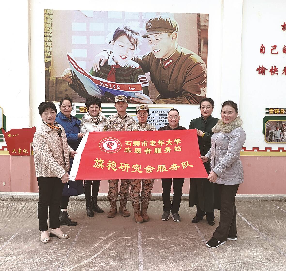 近日,武警石狮中队将一面印有“匠心授艺暖军营 节目传情励军心”的锦旗送至石狮市老年大学,以此致谢该校旗袍研究会志愿服务队连续16年开展拥军志愿服务。