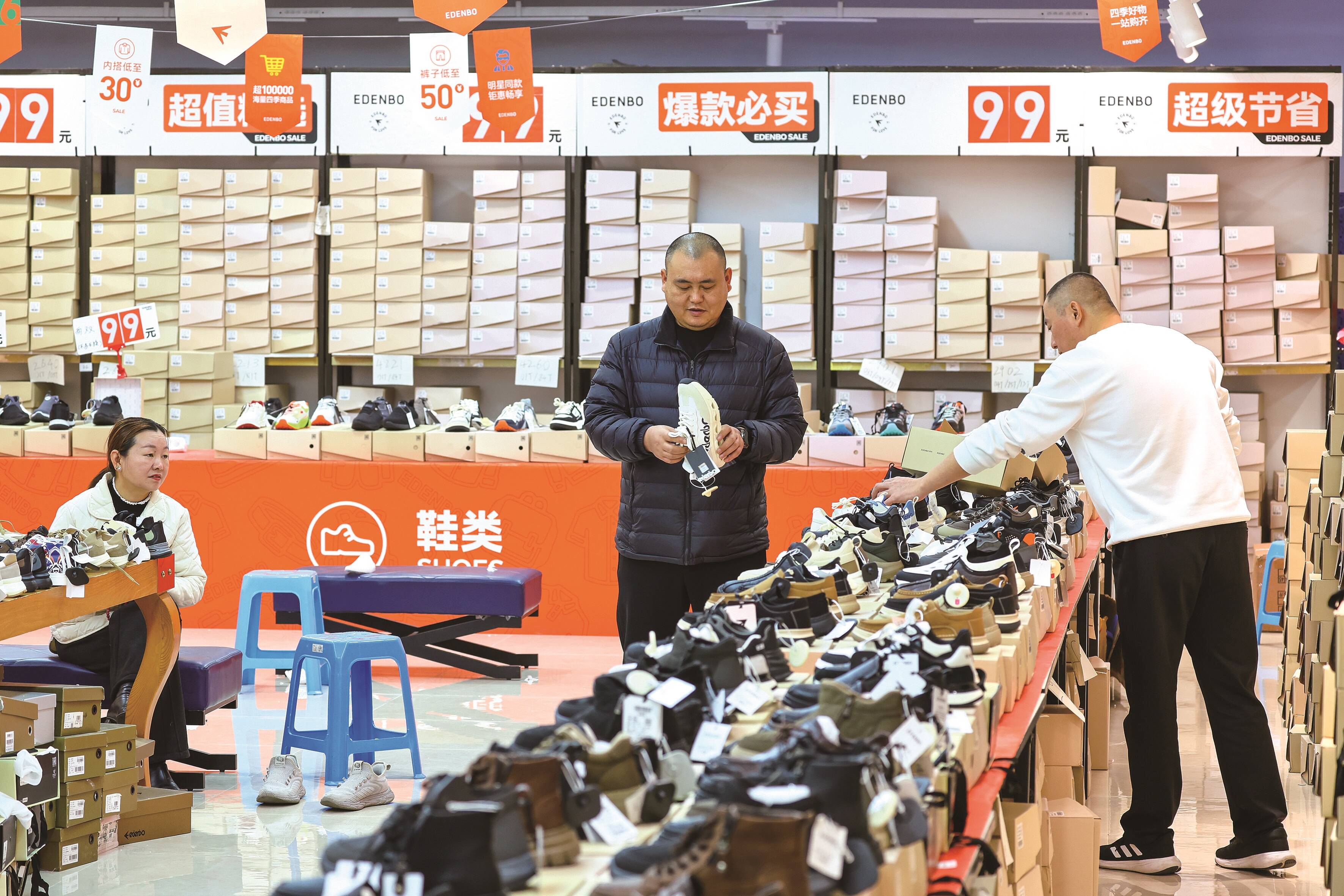 “衣尚焕新”活动精准抓住春节前后的服装消费旺季,通过大规模、大力度的联合让利,不仅刺激本地消费市场,也为来自各地的采购商及消费者提供极具性价比的国潮服装选择,进一步擦亮“石狮男装”的区域品牌名片。图为市民游客在选购年货(记者 兰良增 颜华杰)