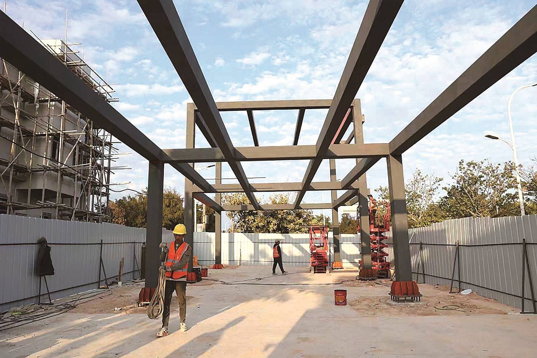 近日,石狮市永宁镇新沙堤村文创商务中心项目完成主体结构施工,正式进入装配式建筑部件安装阶段。这座占地120平方米的滨海文创地标,预计将于今年3月底全面完工并投入运营,为村集体经济注入新活力,也为十里黄金海岸增添文旅新亮点。