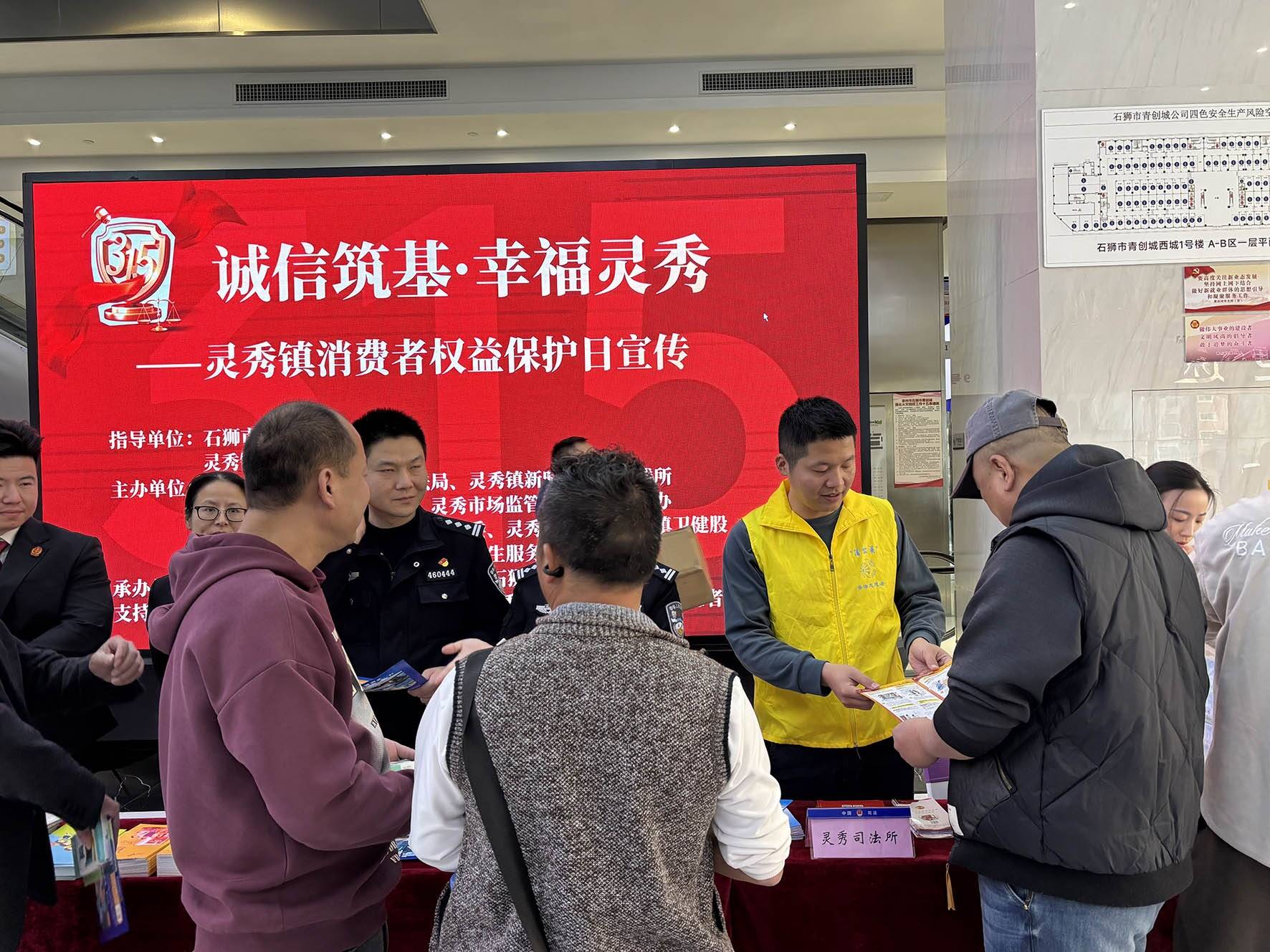 3月13日,灵秀镇联合辖区市场监管所、司法所、派出所等单位,在青创城西城举行“诚信筑基·幸福灵秀”“3·15”国际消费者权益日主题宣传活动。