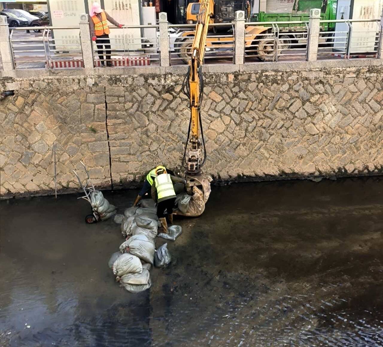 汛期将至,未雨绸缪。3月15日上午,记者在东排水沟湖兴桥段看到,施工人员正将河道内最后几块施工围堰吊运上岸;十天前还存在破损隐患的河床已焕然一新,河道内水面清澈、水流顺畅。至此,由石狮市市政公用事业发展中心组织实施的东排水沟沟底破损修复工程接近尾声,为安全度汛再添一道“保险锁”。
