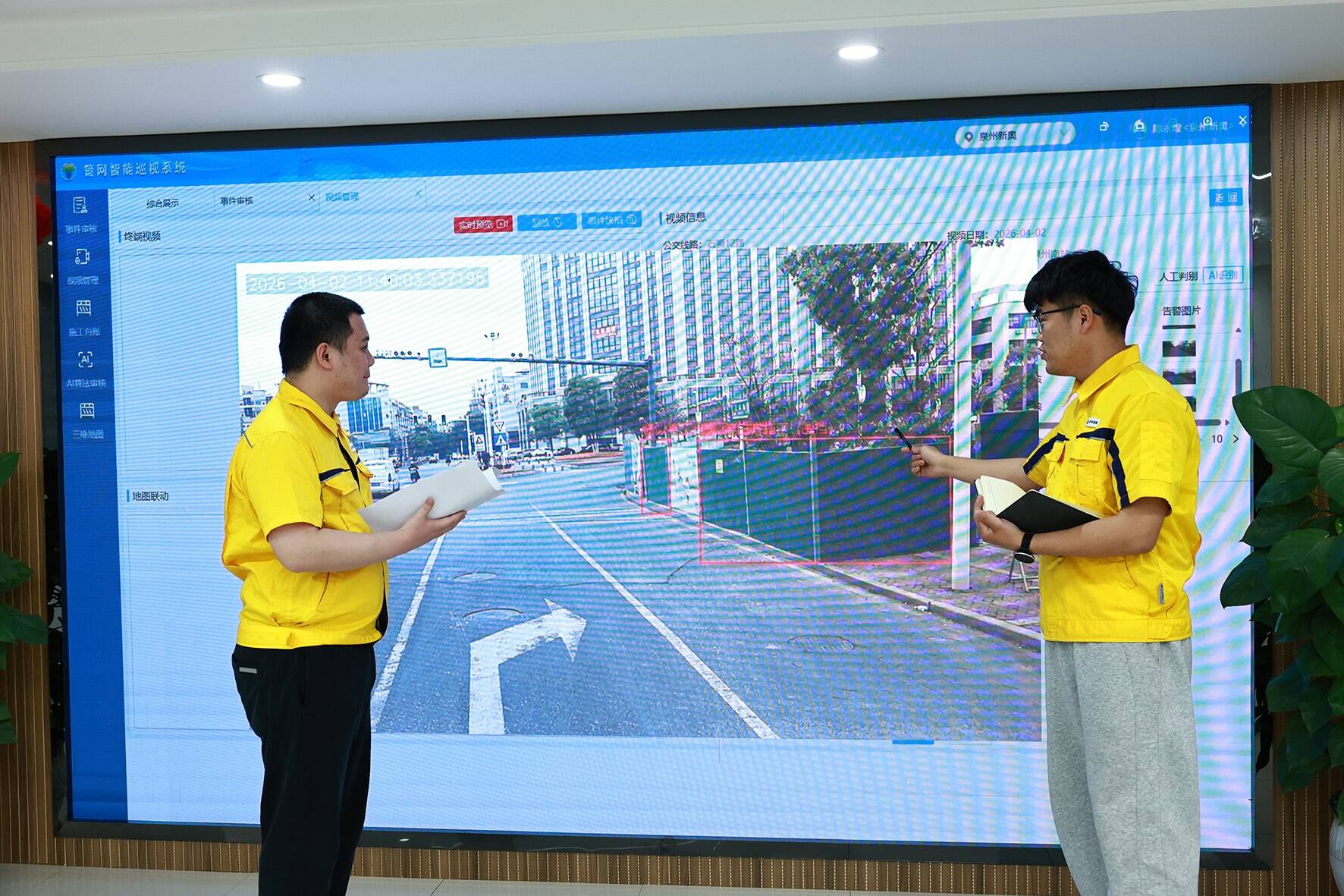 4月2日下午,记者在石狮市天然气智能运营中心看到,两位工作人员正通过管网智能巡视系统显示屏上的“公交AI视频监控巡线画面”,认真查看我市燃气管网周边重点道路及沿线施工情况,细致研判各点位施工安全规范情况,切实保障燃气管网安全稳定运行。