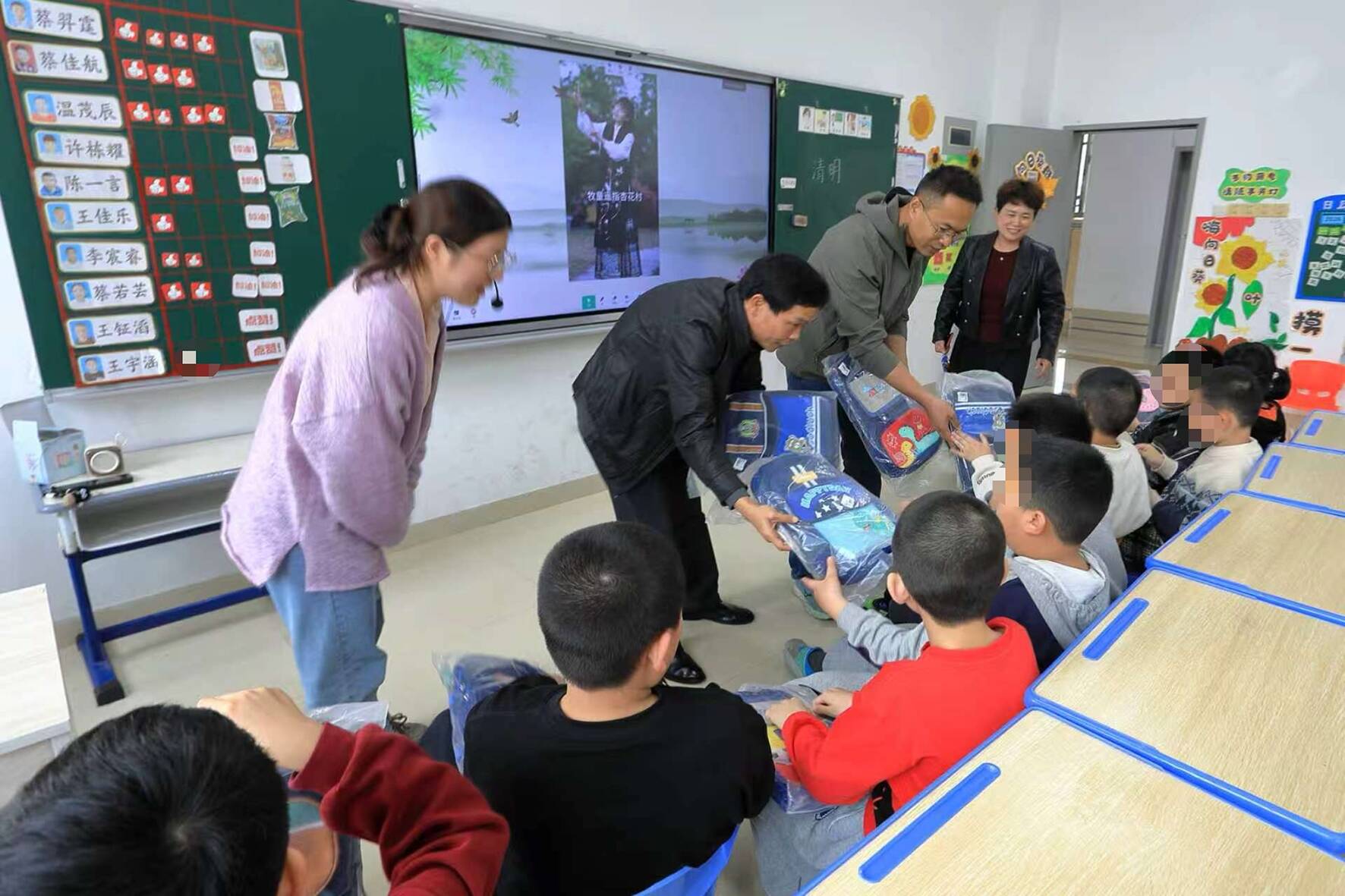 活动现场,志愿摄影师与工作人员有序入校,快速完成设备调试、场景布置等准备工作。校园一楼大厅、教室等区域,星空、彩虹主题KT板与温暖标语艺术装置相映成趣,轻柔的音乐让现场氛围愈发舒缓温馨。摄影师们穿梭在校园各个角落,静静地捕捉孩子们的个人风采、师生互动的暖心画面和同伴玩耍的鲜活瞬间,全程尊重孩子的情绪,不强迫、不打扰。心愿圆梦环节,来自市文联、市残联及摄影家协会的工作人员为孩子们逐一送上定制的双肩背包,镜头同步记录下这份温暖时刻,小小的书包里,装满了对孩子们的美好祝福。
