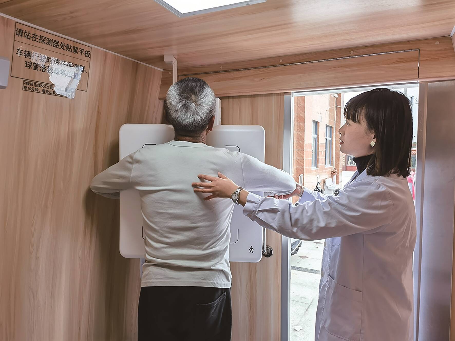 项目要落地,更要让老年人方便可及。糖化血红蛋白检测通过在现场抽血采样即可,进村服务难度较小。“而胸部DR正位检查完全不同,设备对场地、电源和防辐射环境有严格要求,还需要配备专业的操作技师。”永宁镇卫生院副院长林连强告诉记者,过去,老年人想拍一张胸片,往往要辗转去镇卫生院甚至市总医院,“现在不一样了,移动DR体检车直接开进村居。”