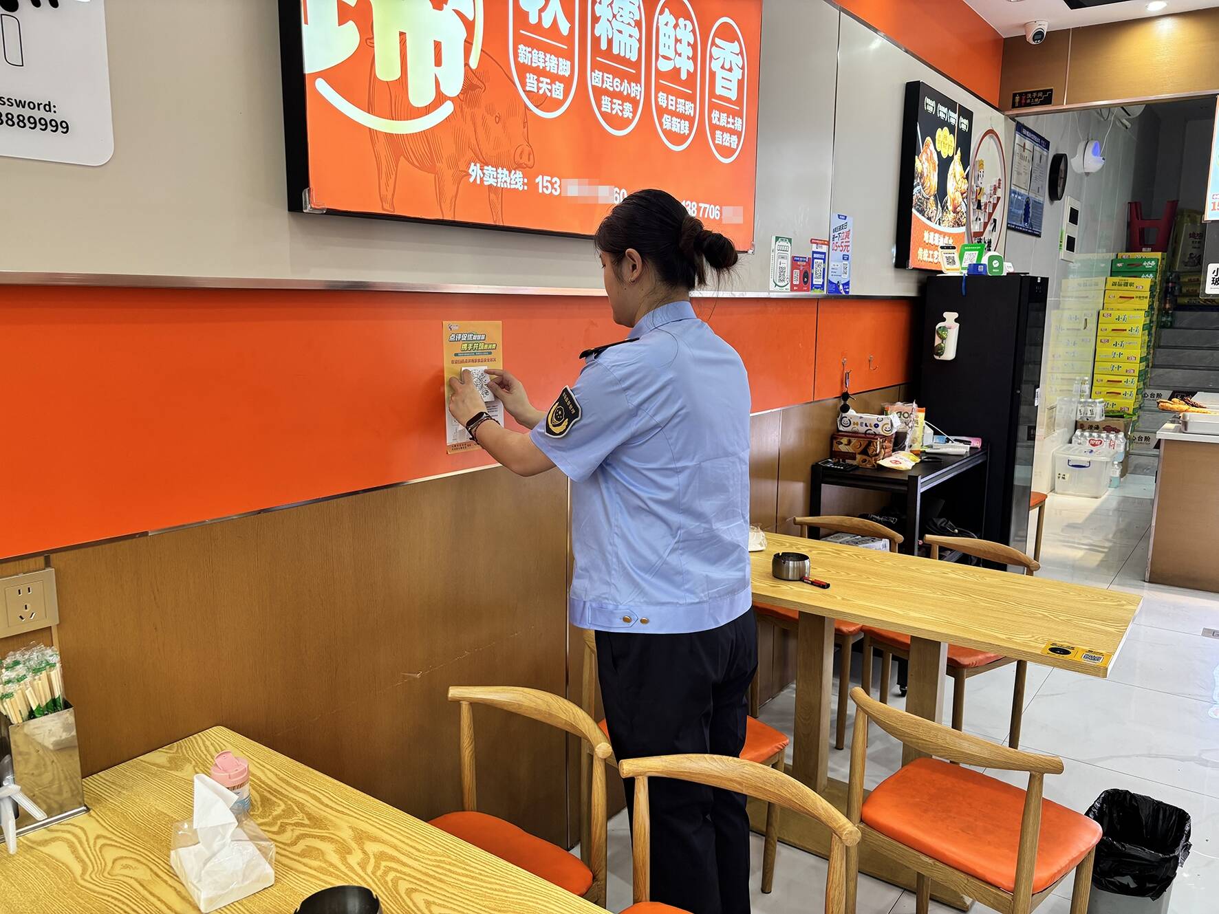 为深入贯彻落实上级关于食品安全智慧监管的工作部署,加快推进食品安全社会共治体系建设,近期,祥芝镇市场监督管理所主动作为、精准发力,在辖区范围内全面开展“石狮食安”小程序宣传推广及商户入驻引导工作。工作人员逐一上门,将“石狮食安”小程序二维码贴纸,整齐张贴在店铺收银台、就餐区等显眼位置,并现场向经营业主细致讲解小程序入驻流程、使用规范及多元功能,不少商户主动配合张贴工作,认真咨询操作细节,对这一智慧监管举措纷纷表示支持与认可。“这个平台既能让顾客直观监督,也能帮我们及时整改问题、提升服务,对食品安全管理和店铺经营都有帮助。”辖区一家餐饮商户负责人说。