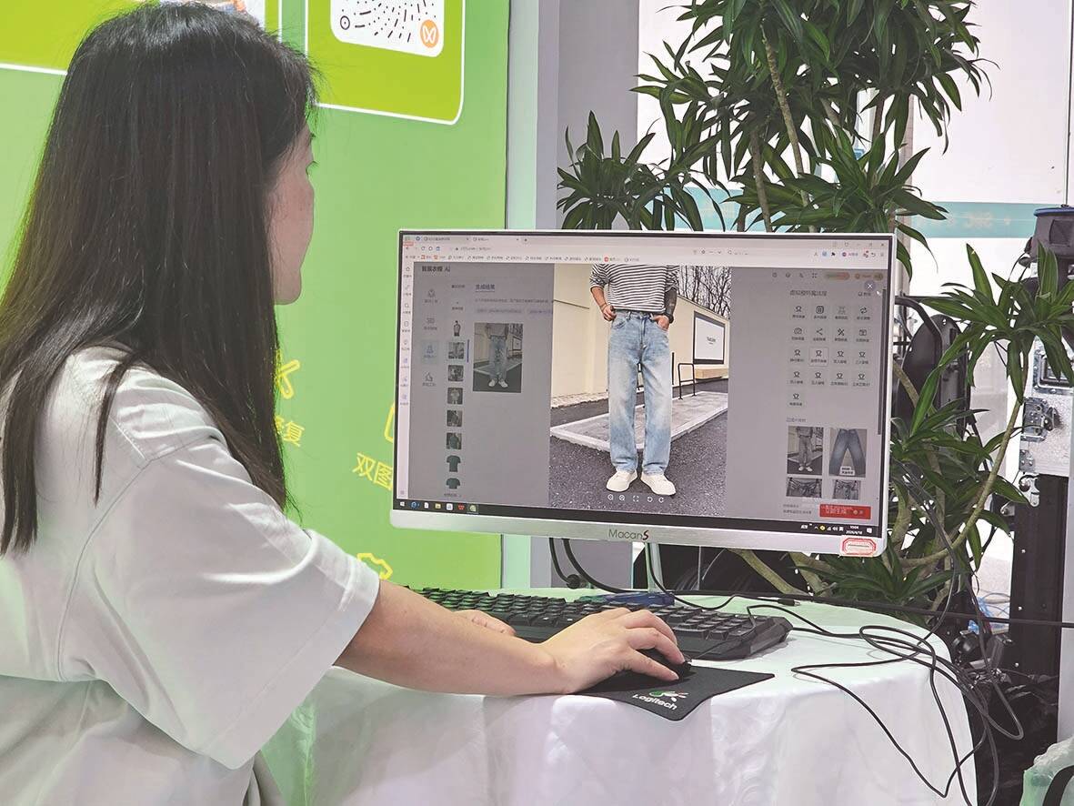 在本次海博会的科技AI馆,R355智能AI的展位吸引众多参观者目光。该平台有关负责人游女士通过生动讲解与现场演示,展示AI换装、AI智能穿戴、AI绘图等功能的操作流程,为参观者带来沉浸式的试衣体验。“今年最大的亮点是增加‘多模特上身’功能,并且可以实现AI场景生成、姿态调整、人脸替换等操作。”游女士表示,通过R355智能AI平台,能够帮助纺织服装企业实现降本提效,让客户节省更多的拍摄成本。(记者 吕沐华 张诗瑶)