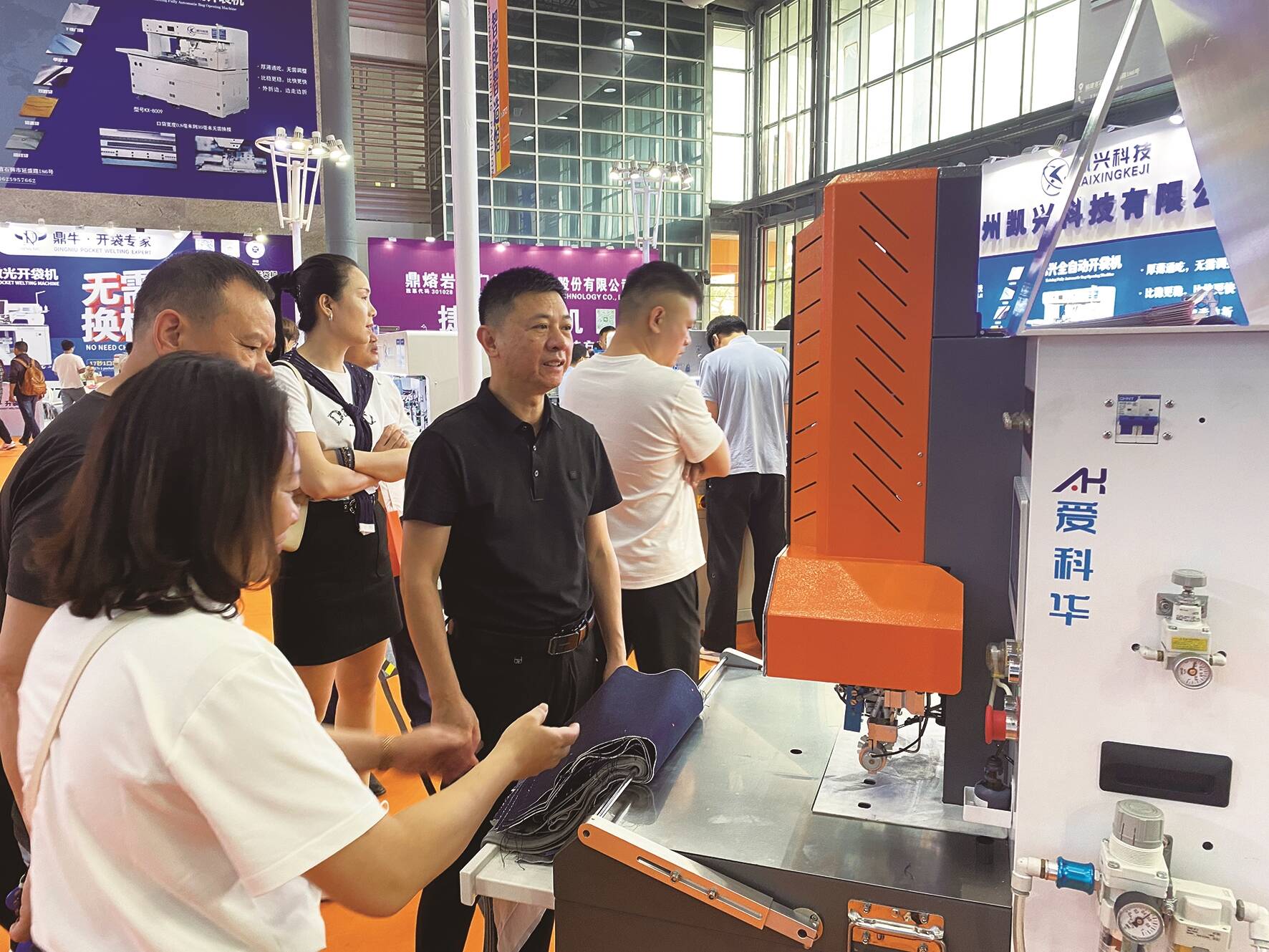 不远处的泉州凯兴科技有限公司展区同样热度不减,吸引众多专业人士驻足围观、试机体验。“此次我们联合浙江乐江机械有限公司重点展示了备受市场关注的全新升级款无鸟巢大师平缝机、高端熨烫设备智能烫台和经典款裁剪机系列产品。”该公司相关负责人介绍,首次亮相海博会的无鸟巢大师平缝机,采用最新无鸟巢技术,彻底解决了起缝不上线、断线、有鸟巢(线团)等行业痛点。