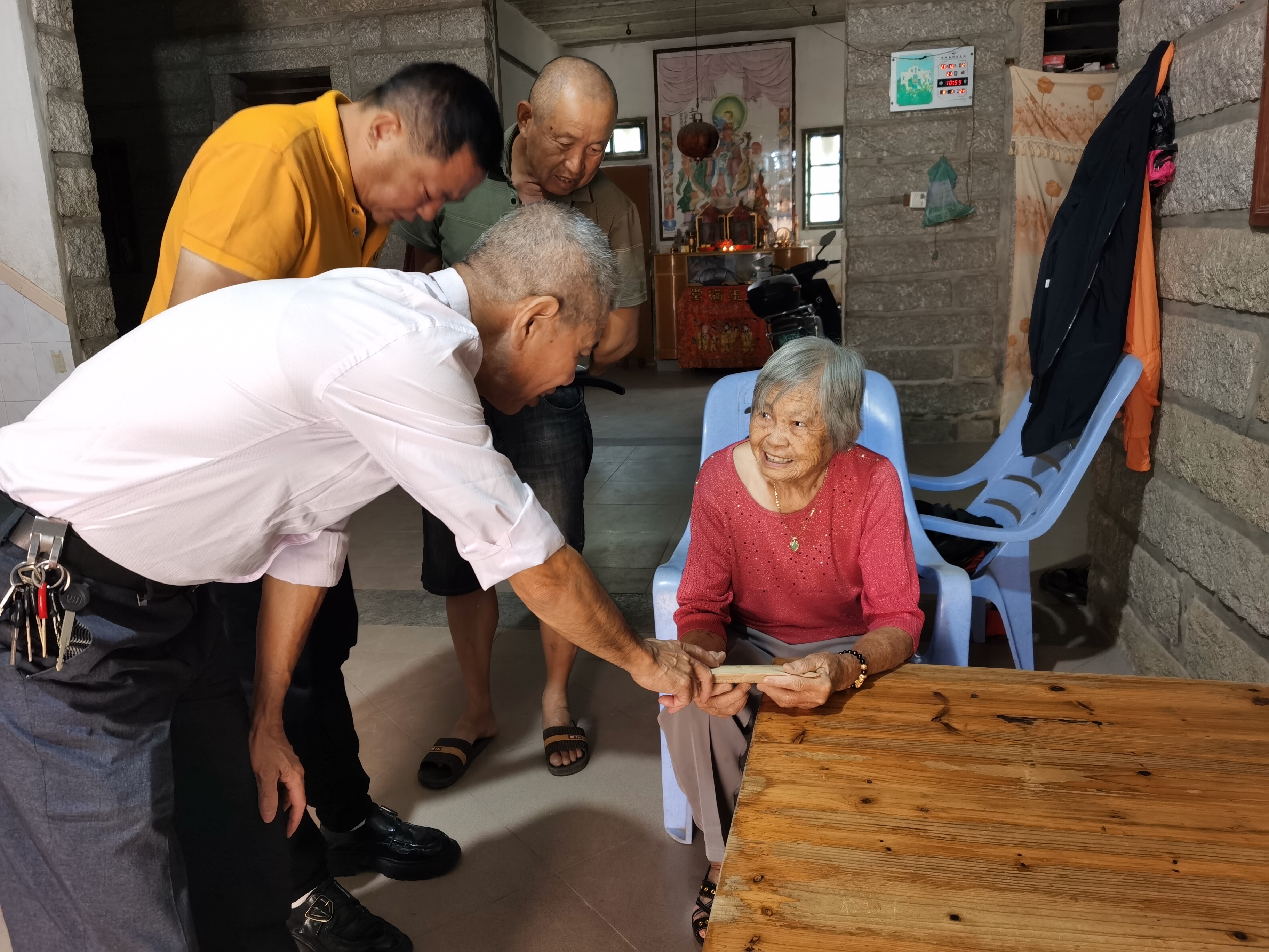 10月21日,石狮市老区建设促进会副会长兼秘书长蔡放鸣带队,联合市民政局代表,先后前往深埕、沙堤等7个村(社区),为10名革命“五老”遗偶送去2025年度荣誉津贴及2026年度城乡医保费用。