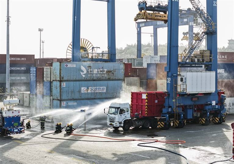 近日,中远海运港口有限公司在石湖港区组织开展危险货物火灾与泄漏事故联合演练。
