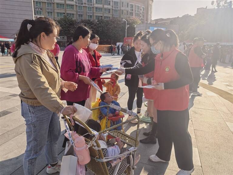 活动现场设置政策咨询、法律援助、健康指导等宣传点。计生协会志愿者向群众发放新型婚育文化、科学育儿知识等宣传品,并针对优生优育、家庭矛盾调解、生育津贴申领、家庭健康等群众关心的问题,提供贴心实用的政策指导和生活建议。