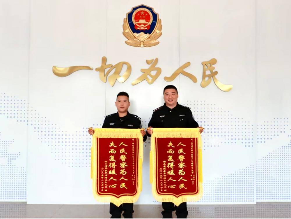 近日,永宁派出所民警庄奇伦收到一件来自湖南的快递,拆开一看,是两面一模一样的锦旗——“人民警察为人民 失而复得暖人心”。锦旗上,字里行间满是群众的诚挚谢意。可是,这位群众为何要送两面一模一样的锦旗?